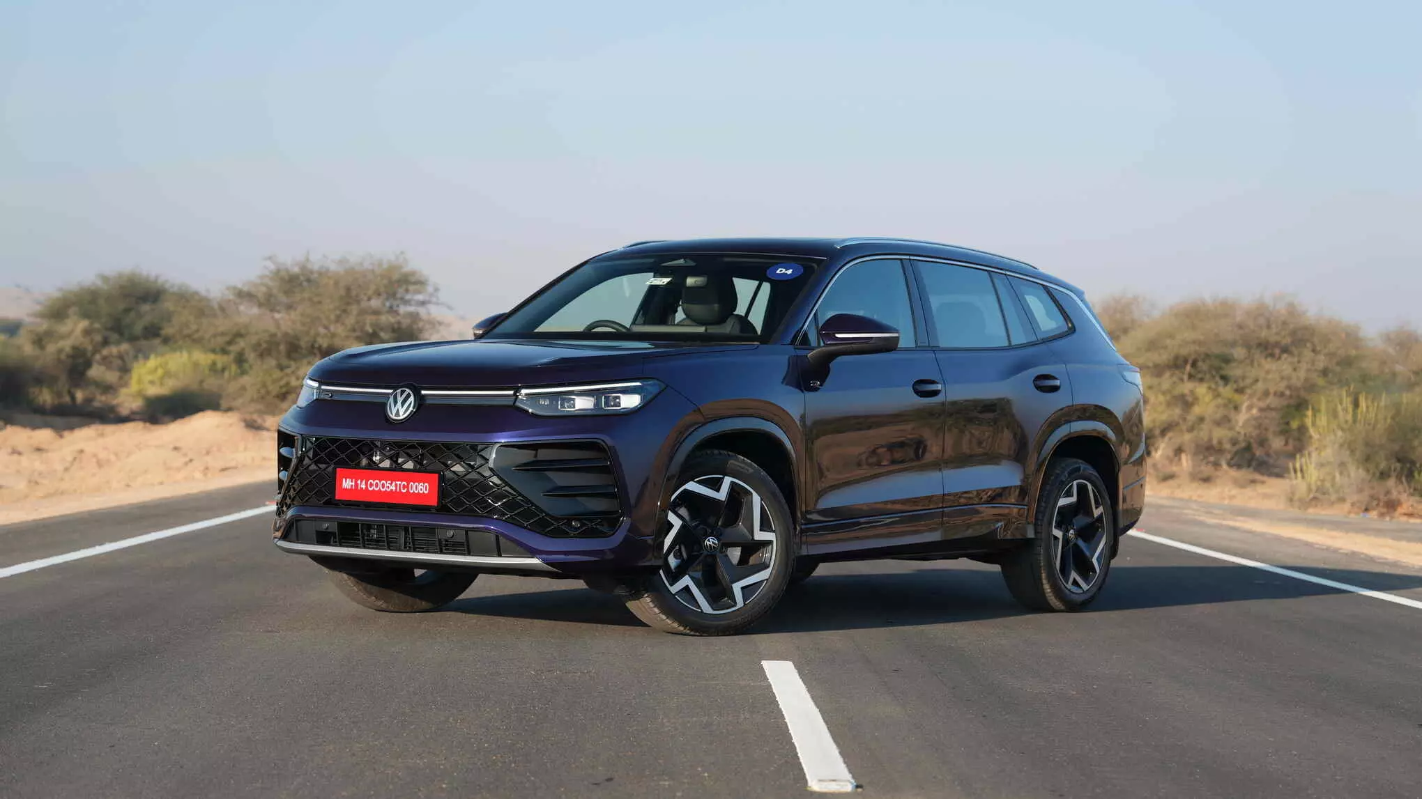 I am even more thankful though of how it drives. It drives well, very well in fact. The engine is the EA888evo4, which you find in the Kodiaq, and the Tiguan, and the Golf GTI. Like the former, it makes 201bhp and 320Nm, paired to the 7-speed DSG gearbox. It also shares its platform with all these three cars (how modular is the MQB EVO platform!!). And what a platform it is. In theory it should drive very similar to the Kodiaq, but it is actually far more planted and reassuring. Every time I approached a corner in the winding Jaiselmer roads, the car kept on offering more and more confidence to attack it even more. Turning all the settings to the Sport mode makes things even more crisp and precise. The car then holds its line with the precision of your steering input, sometimes losing the rear ever so slightly when you overstep the limit of the tyres, but not in a way that feels out of control, rather its being slightly playful. Though I wouldn’t advice doing this with people sitting in the third row. For a large 7-seater it exceeds how you expect it to handle. Worth noting is that the major miss as compared to the Tiguan is the absence of Dynamic Chassis Control (DCC), which enables 15 different settings for the suspension and makes a host of difference to the ride and handling. That said, even without the DCC this seems to handle itself much better than its cousin. It’s a good thing it knows how to hold itself because the speed builds up rather quickly when you put your foot down, and the speedo almost always shows a higher number than you think it would be. To give you context, 0-100 arrives in 7.3 seconds as claimed by VW – and it didn’t feel any slower.