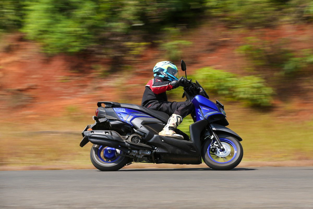 The stiff suspension setup of the RayZR is a boon on the twisties!