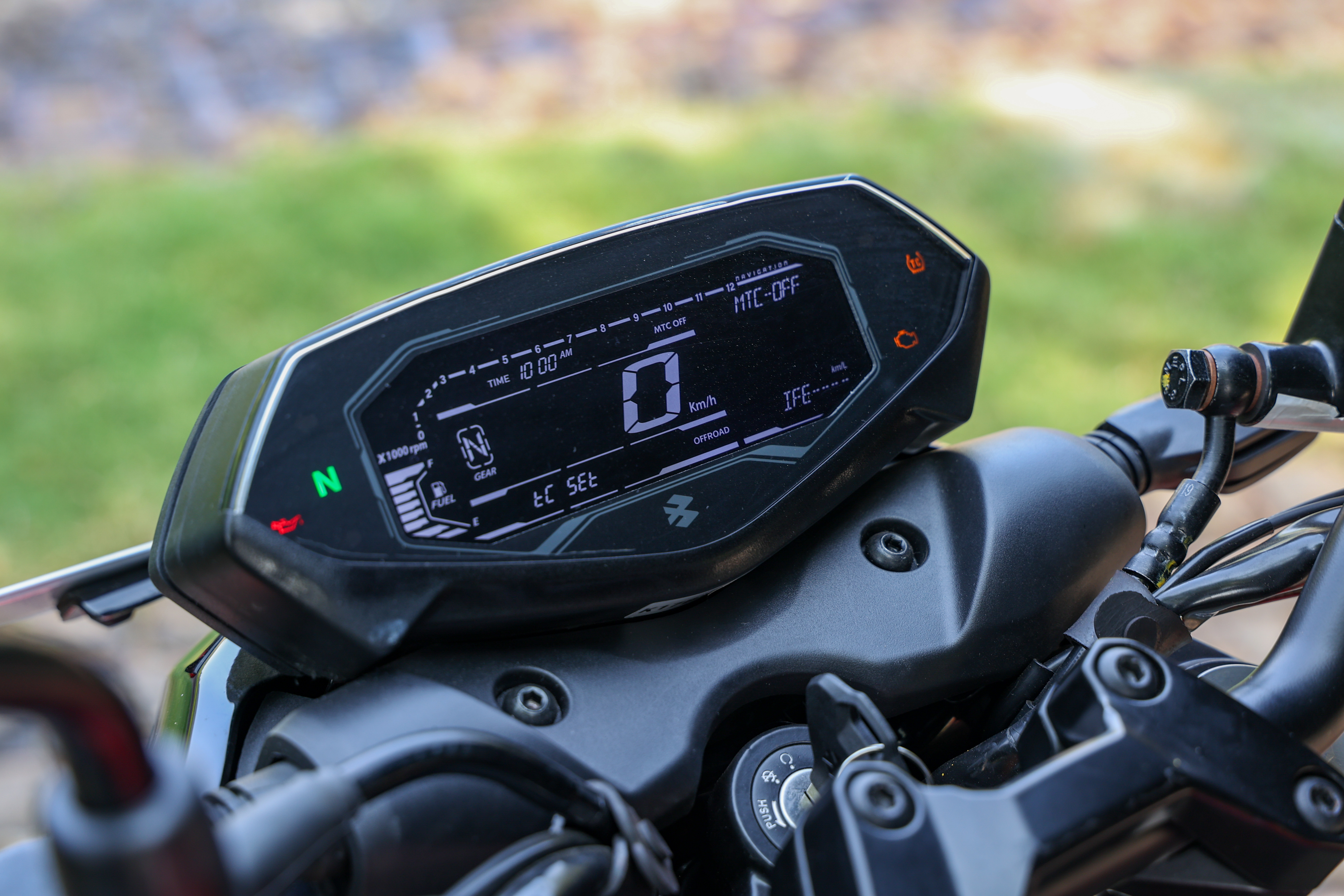 Braking duties in the N250 are handled by a Grimeca sourced 300mm disc upfront and a 230mm disc at the rear. The setup does a good job of slowing the bike, with good bite and offers nice feedback. New for 2024 is the switchable traction control system and the aforementioned three-mode ABS, which is a pretty neat feature. As expected, in the ‘Rain’ mode, the system is the most intrusive but doesn't feel dangerous by any means. Things get better in the ‘Road’ mode but what I really like is the ‘Off-road’ setting. Unlike off-road, aka supermoto, mode in other systems, it doesn't disengage at the rear but allows for slip which gives you better control and is handy if you're looking to get unstuck out of a sticky situation. The traction control can also be completely turned off in the Off-road mode.