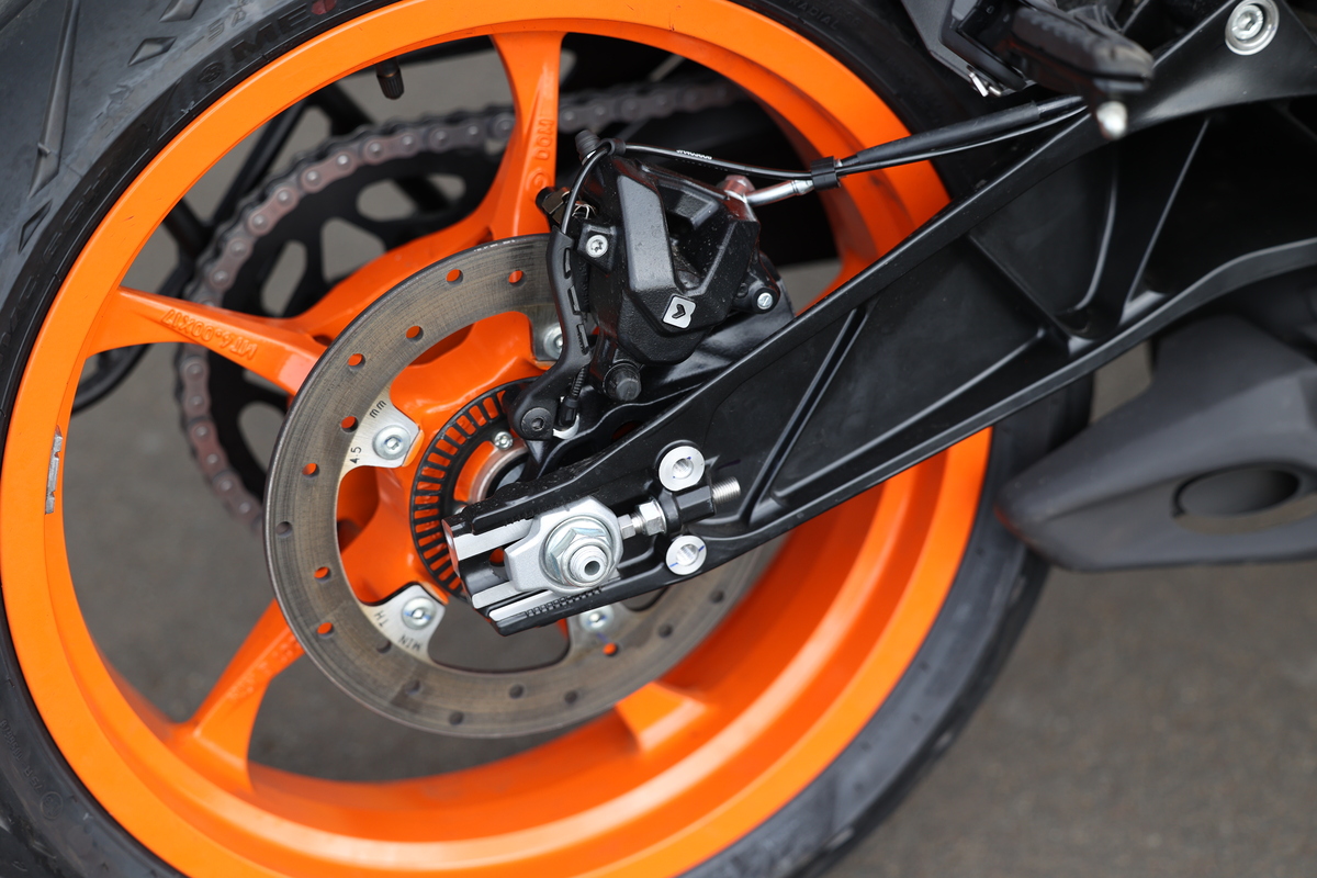 The new rims save 2kg of unsprung mass.2024 KTM 390 Duke features