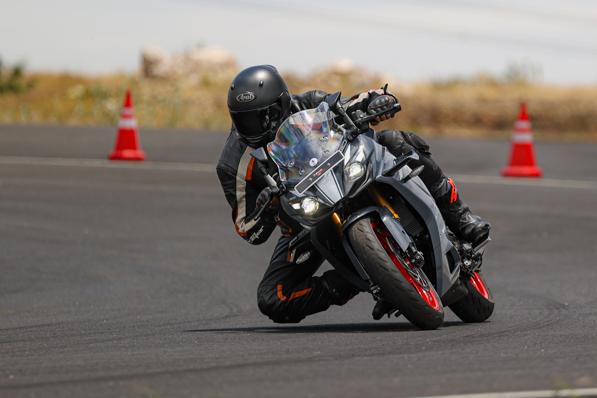 Our bikes were shod with the Dynamic kit which included fully adjustable front and rear suspension and a brass coated chain for better longevity. This is not new, but the chassis setup is complemented very well with the bump in performance. The brakes are sharp and responsive and work very well with the super grippy and versatile Michelin Road 5s. Testing a bike in familiar territory will always yield the best results. But we were riding on the new CoASTT high performance track in Coimbatore and had to learn the layout from scratch. This is where the RR’s characteristics really come in handy allowing you to make mistakes and understand the layout and then push like your rear quarters are on fire. The RR adapting well in both situations. The only complaint for spirited riding are the lower placement of the footpegs. Something that’s easily fixed by opting for the BTO ’pegs.
