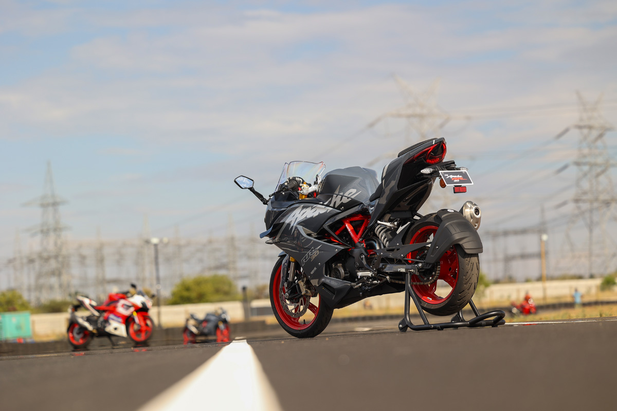 While more power is always welcome, I was worried it wouldn’t be all rosy — the RTR 310 added a whole load of vibrations in the process. But, I’m very happy to report that the RR 310 doesn’t suffer the same fate. Refinement levels are great. And in fact, if memory serves correctly, it feels a smidge more refined than the previous bike. The extra power doesn’t transform the performance of the machine but the difference is apparent. The midrange feels like it’s offering more, so does the top end. This makes it more friendlier to ride while helping you shave some time out of your lap times because you can almost always carry a gear higher than you need to and comfortable get away with it. This complements the friendly but precise chassis of the bike very well. We rode exclusively on track and the only vibrations I felt were post 9000rpm and even these weren’t the annoying kind.