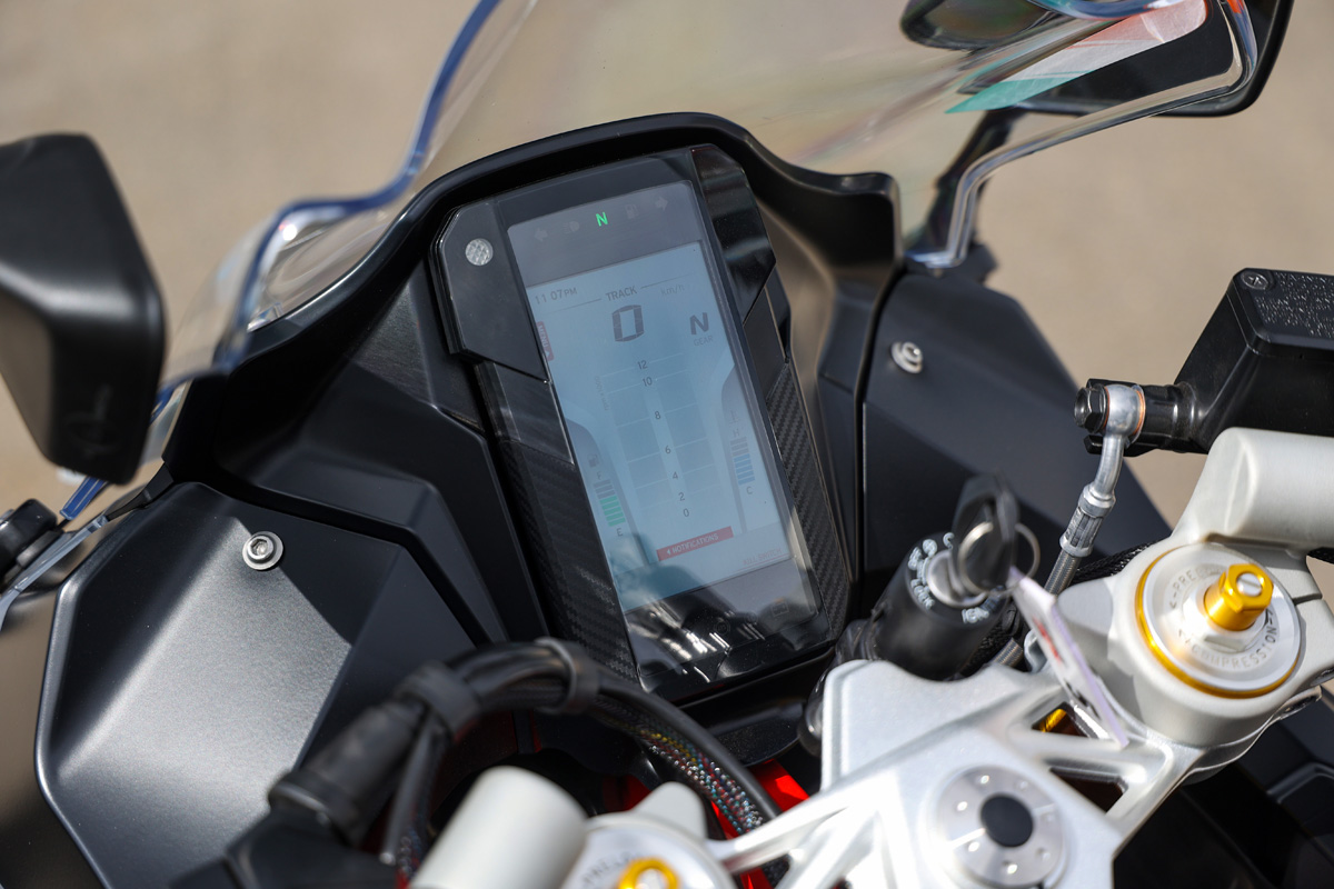 The 5-inch TFT screen on the 2024 TVS Apache RR 310 gets multi-way connection and also displays live tyre pressures