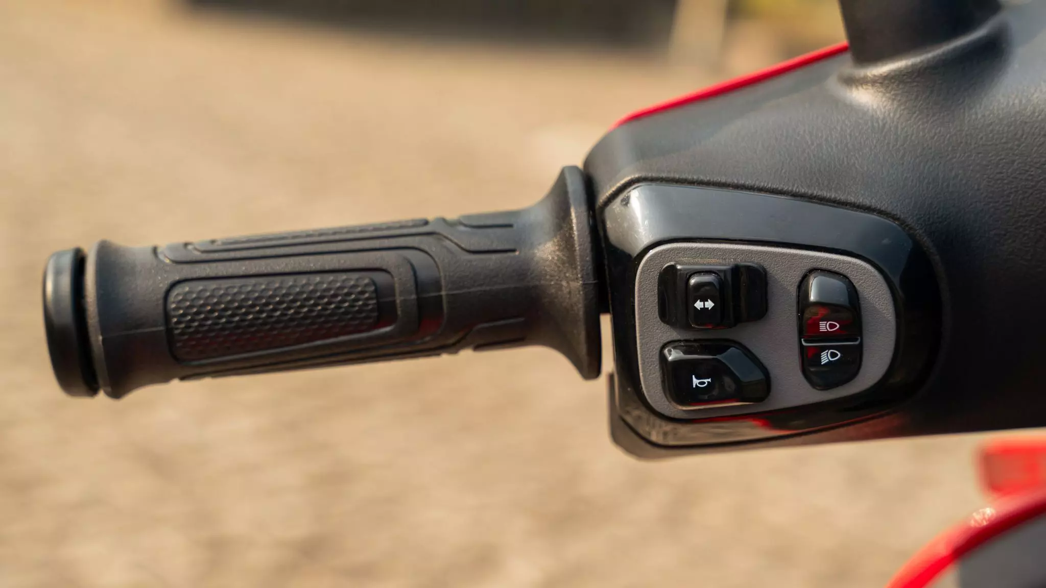 100mm. That’s how much shorter the wheelbase of the C25 is than that of the C35. With that and a bunch of other changes, the scooter tips the scales at 107kg making it well over 22kg lighter than the bigger 30 and 35 series of Chetak. Accessibility, not just in terms of price but primarily in terms of the scooter being easy to use and manage has been the biggest component in the vision board of the creation of the C25. Going down in size does also mean that the underseat storage comes down from 35 litres to 25 litres. But that’s still more than you get with many scooters in the market today. Build quality wise too, the C25 surpasses all expectations with uniform panel gaps, good paint finish on all six colours that you can get the scooter in and in the switchgear. Speaking of switchgear, the indicator switches are finally on the same side. They do actually listen!