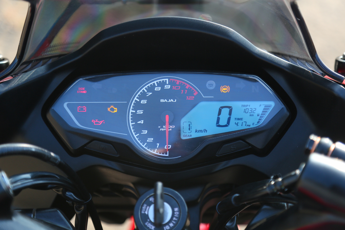 The instrument cluster on the bike has been designed from the ground up. The cluster has a bezel-less design and that’s a nice touch. The cluster is made up of an analogue tachometer in the centre, to the right is the digital screen which houses information like speed, fuel range, the odometer and now finally, a gear position indicator. On the left side of the tachometer is the section where all the warning lights are displayed. This is a pretty straightforward instrument console with no unnecessary frills. It is easily readable even under direct sunlight and you have all the relevant information you need at a glance. Although, in today's day and age of connectivity it’s surprising that Bajaj didn’t opt to add Bluetooth connectivity.