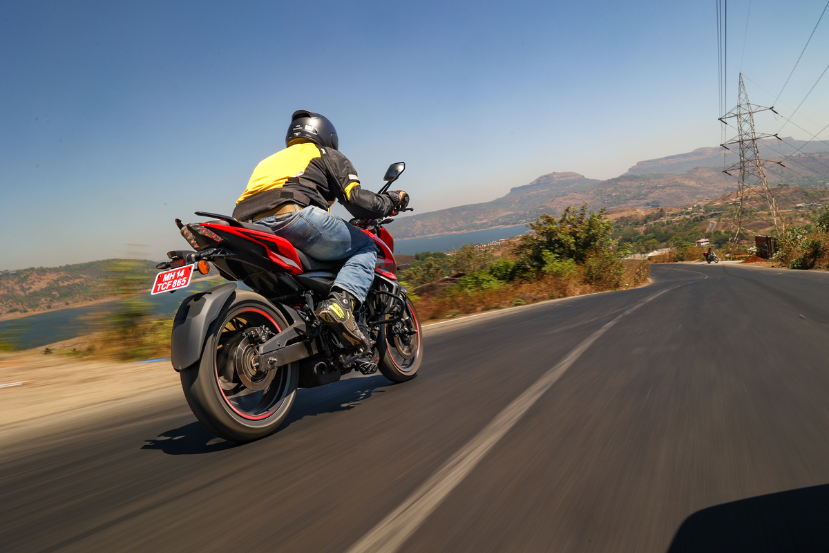 In terms of handling the bike feels very Pulsar-like, not NS-like. The NS200 is a precise, sharp and rock-solid bike that inspires a lot of confidence in most riding conditions. This on the other hand feels a little twitchy, just a little unstable like the original Pulsars did. A lot of it has to do with the front tyre being of bias-ply construction instead of radial and the suspension setup. The suspension tune is a bit odd in that the compression feels very plush, very calm, but it rebounds rather rapidly making the bike feel like it’s fighting the road surface rather than beating it into submission. This translates to waiting a little longer for the bike to settle when entering a corner hard on the brakes. That, along with the non-radial tyre makes the front end feel a little vague. A radial front tyre should help solve a big piece of the handling puzzle but the suspension will require some work before it feels ace. Braking comes courtesy of an axially-mounted twin-piston Grimeca calliper mounted on a 320mm disc at the front and a single-piston calliper mounted on a 230mm disc at the rear. Braking performance, while adequate, leaves a lot to be desired. The front could do with more bite. But the ABS in sport mode was never an issue. So that’s good.