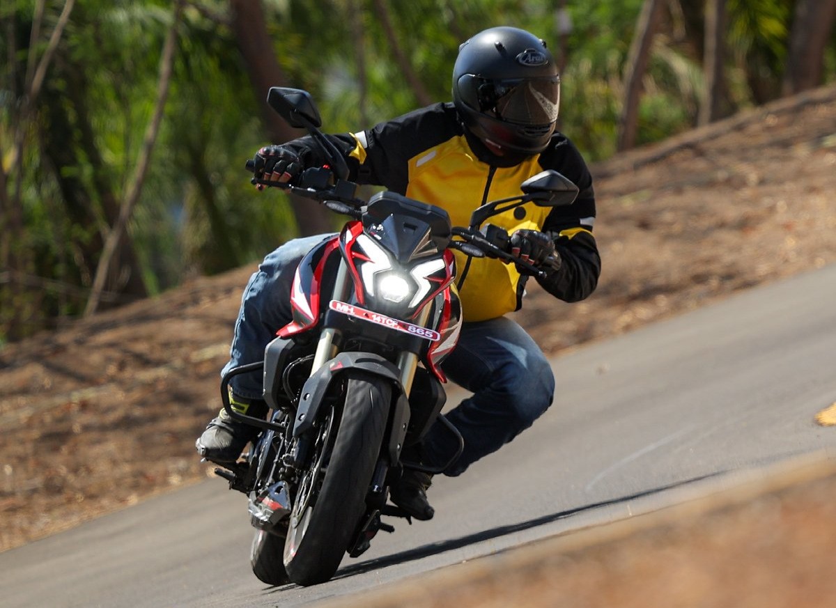 The ergonomics of the bike are spot on with a commanding upright riding stance with your feet in a slightly rear-set position. The NS400Z in true streetfighter fashion gets a wide single-piece handlebar instead of clip-ons like the NS200. This gives you a lot of leverage and makes staying in the saddle for longer a less fatiguing task. The seat height is at a comfortable 805mm and the kerb weight of 174kg makes it a lot easier to manage than the Dominar.