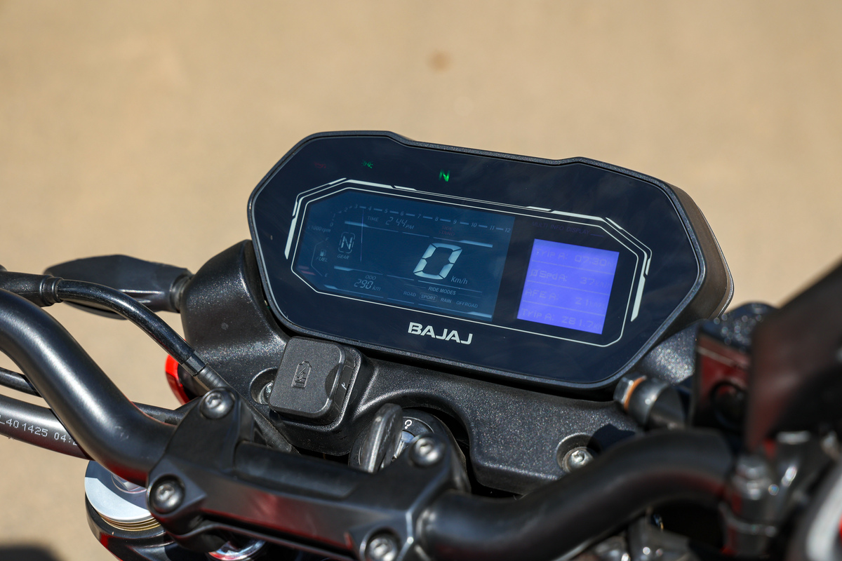 The Pulsar NS400Z is packed to the gills with features. As mentioned earlier, you get ride-by-wire with multiple riding modes. Traction control that can be switched off and you get a different calibration for the ABS in each riding mode. The instrument cluster is fully digital with a colour LCD screen taking care of all instrumentation. There’s also a small square screen that has been in-layed into the main screen that shows your trip details, and ride modes and houses all the connectivity features like phone notifications, music and call controls and turn-by-turn navigation. All of this is controlled by a set of buttons on the left switch cube and is fairly easy to operate. You also get adjustable levers which is a big plus.