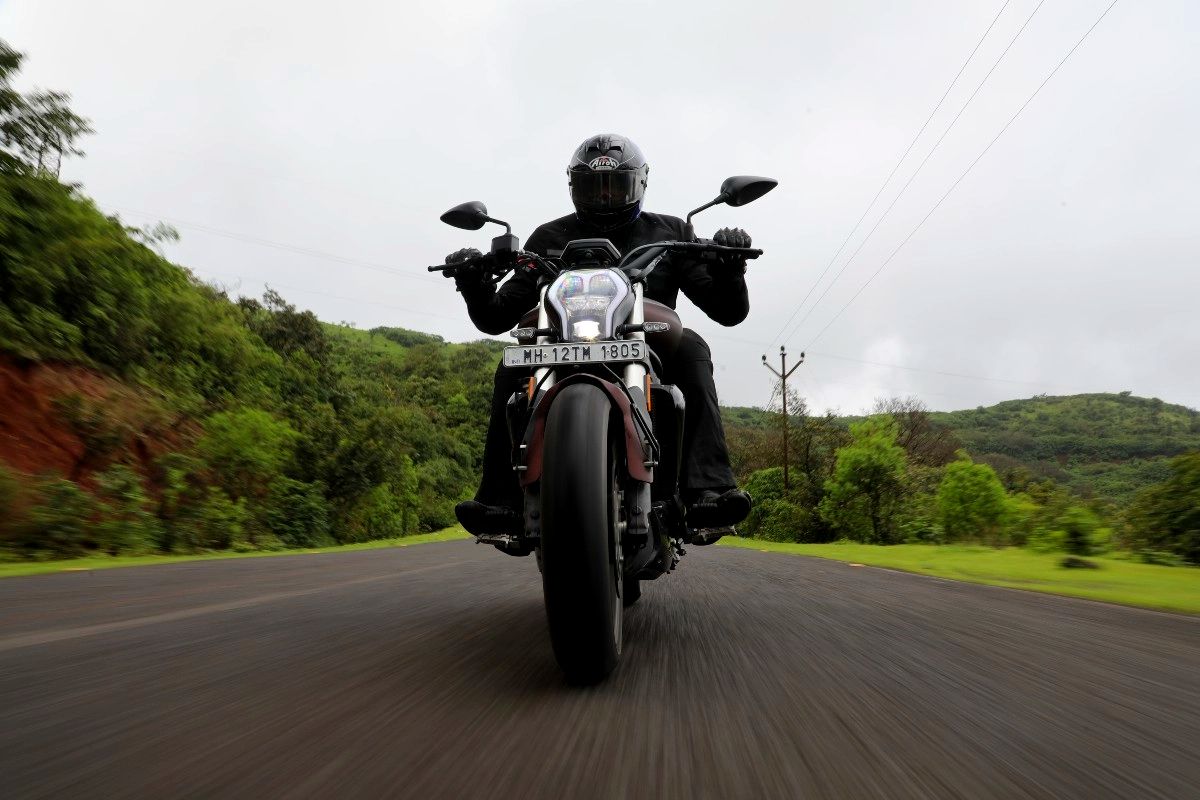 Despite its footprint, the Benelli 502C is not just a good cruiser, but a potent handling machine as wellThe 502C is surprisingly agile and can do a lot more than just cruise in a straight line. It handles with the gusto of a bike much lighter than itself. It will tip into a corner without much coaxing, hold the line with a lot of stability, and exit the apex nice and clean. The chassis inspires a lot of confidence and the Pirellis offer a good amount of grip in both dry and wet conditions. In fact, spend some time understanding the bike and you’ll be scraping the foot-pegs wishing for more cornering clearance. And as for the ‘cruising’ that the bike is intended for, the 502C handles that like a champ. The new suspension setup is pliant and soaks up pretty large bumps and potholes without unsettling the bike in the slightest. And despite the low seat height, Benelli has managed to squeeze 170mm of ground clearance from the bike, meaning I never bottomed out the bike even on the most aggressive of speed breakers. The braking setup is adequate and the ABS system is well-calibrated and intervenes only when the situation gets hairy. The only hindrance in this entire setup is the lack of wind protection. The engine is identical to the TRK 502 and the Leoncino 500, so we know it is tractable and capable of cruising at 120kmph without breaking a sweat. But at that speed on the 502C, the wind-blast will be unbearable for anything longer than a few minutes at a time. You’d best stick to cruising at around the 100kmph mark unless you manage to figure out an aftermarket solution to deflect wind.