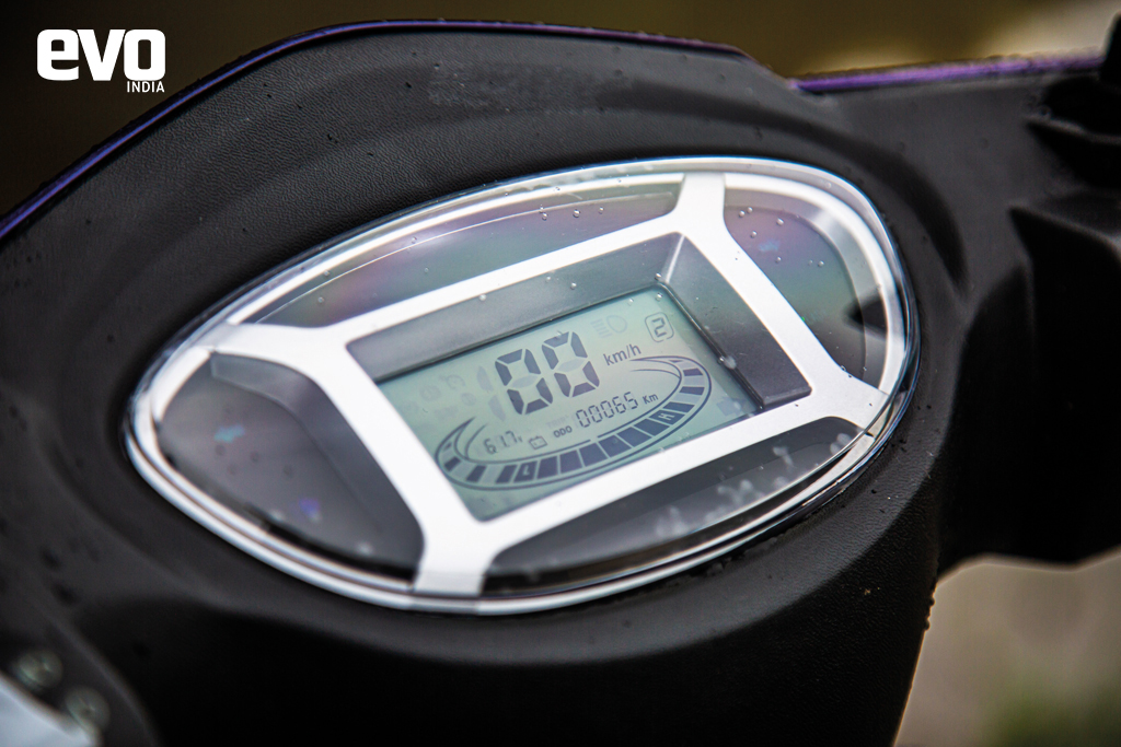 The firm ride, coupled with the low 78kg kerb weight, makes the ride feel decidedly skittish on bad stretches. The battery, despite the admirable range, takes about six hours to top up, and its underseat location leaves precious little storage space. The chime every time you switch off the Zeal may help forgetful people, but it gets irritating very soon. And if you activate the ‘lock’ function on the key fob (yup!), the Zeal will let out a real cacophony when the wheels sense any movement at all, again an overkill.