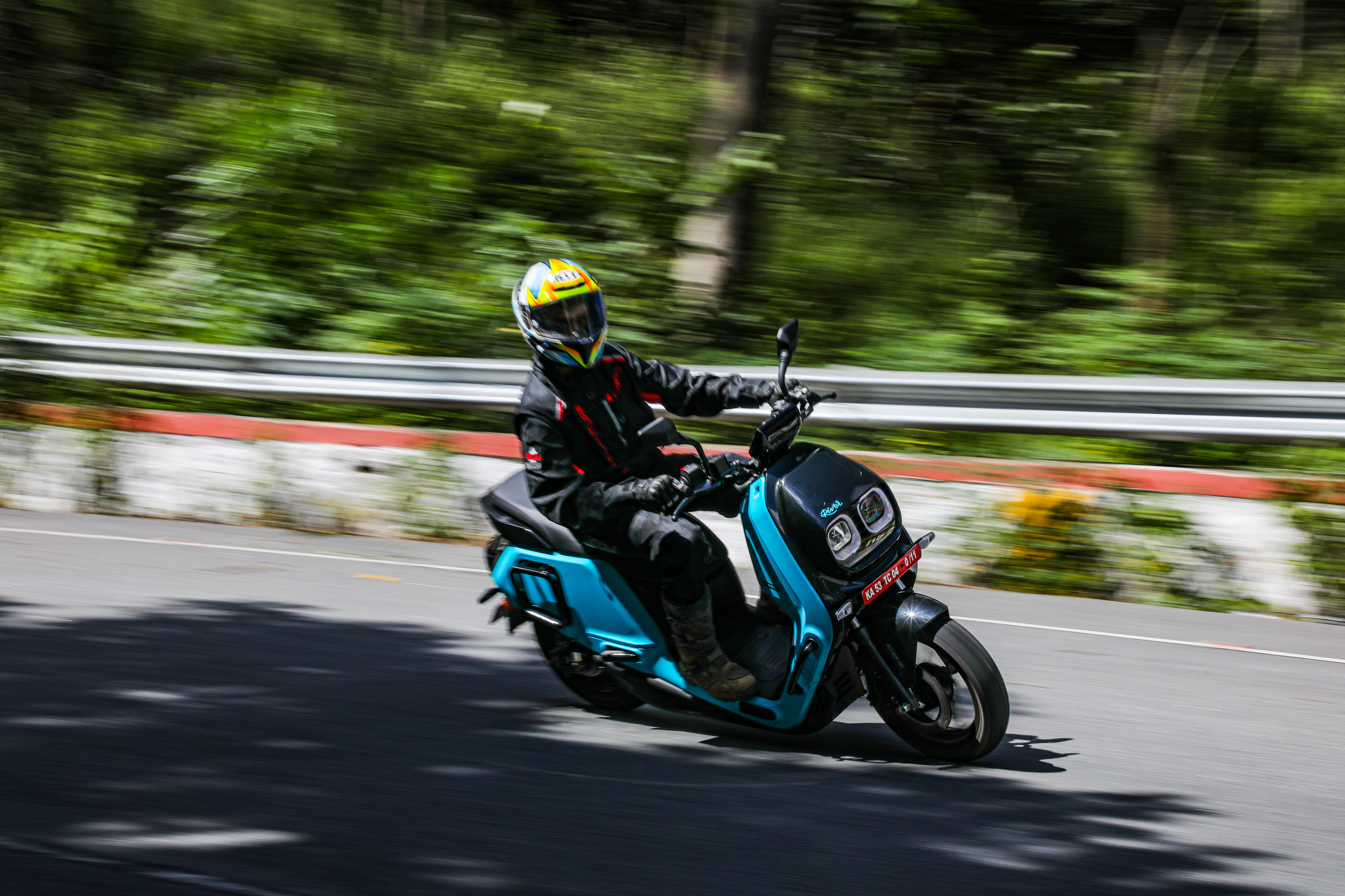 But, what's really surprising is the uniformity in the Indie's performance even when you're riding with a pillion. The brand also claims that it can tackle gradients upto 18 degrees and that was one claim which I was very eager to test. On my way to Nandi hills, I stopped midway through one of the hill climb's steep corners. I asked Shutterbug Avdhoot, who weighs 90kg, to hop on and then tried to get away. And the Indie didn't skip a beat even in Eco mode. That's really impressive. So people lugging loads don't have to worry about the drop in performance while riding the Indie up steep mountains. What's also commendable is the throttle calibration and regen tuning. The accelerator doesn't feel choppy and the regen feels linear.