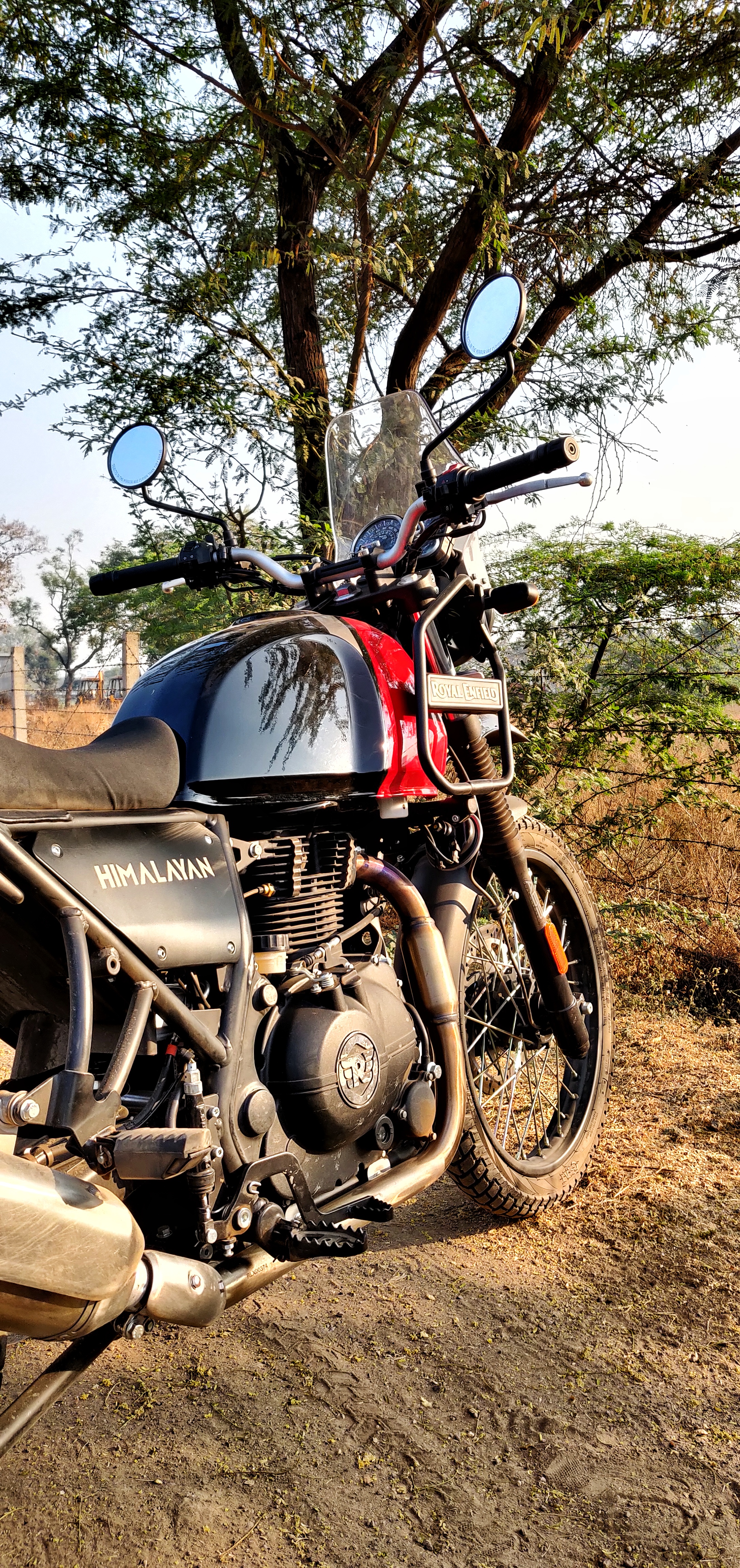 The Himalayan’s ergos are sorted even when you decide to stand up on the pegs and get things going on the dirt. The tank has lovely recesses to allow you to hold it and the serrated pegs ensure that you are latched onto the bike firmly.