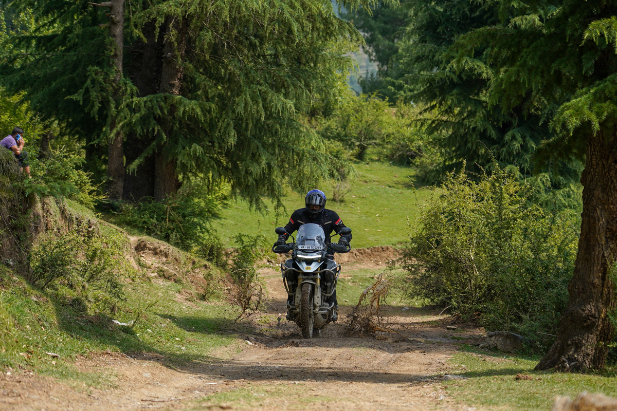 Now while a lot of the chassis setup is largely the same on both variants, the few elements that are different, really set the two variants apart. The GT variant is the more road-biased variant that gets a better-suited 19-inch front and 18-inch rear cast alloy wheel setup with a Metzeler Tourance tyres. Now, this setup works wonders on the roads while still allowing a fair bit of off-roadability. There were many sections of the road in our ride where the roads could be considered light trails and the bike handled it like a champ. As far as riding it on road, the bike feels planted and thorough, and the suspension with its levels of adjustment adds a lot of character and versatility to the bike. Show the GT Pro a set of twisties and there is a lot of fun to be had. Although, there is no denying the fact that it is a heavy (245kg) motorcycle and you do need to muscle it a bit to change direction but the comfortable ergonomics make that process significantly easier.