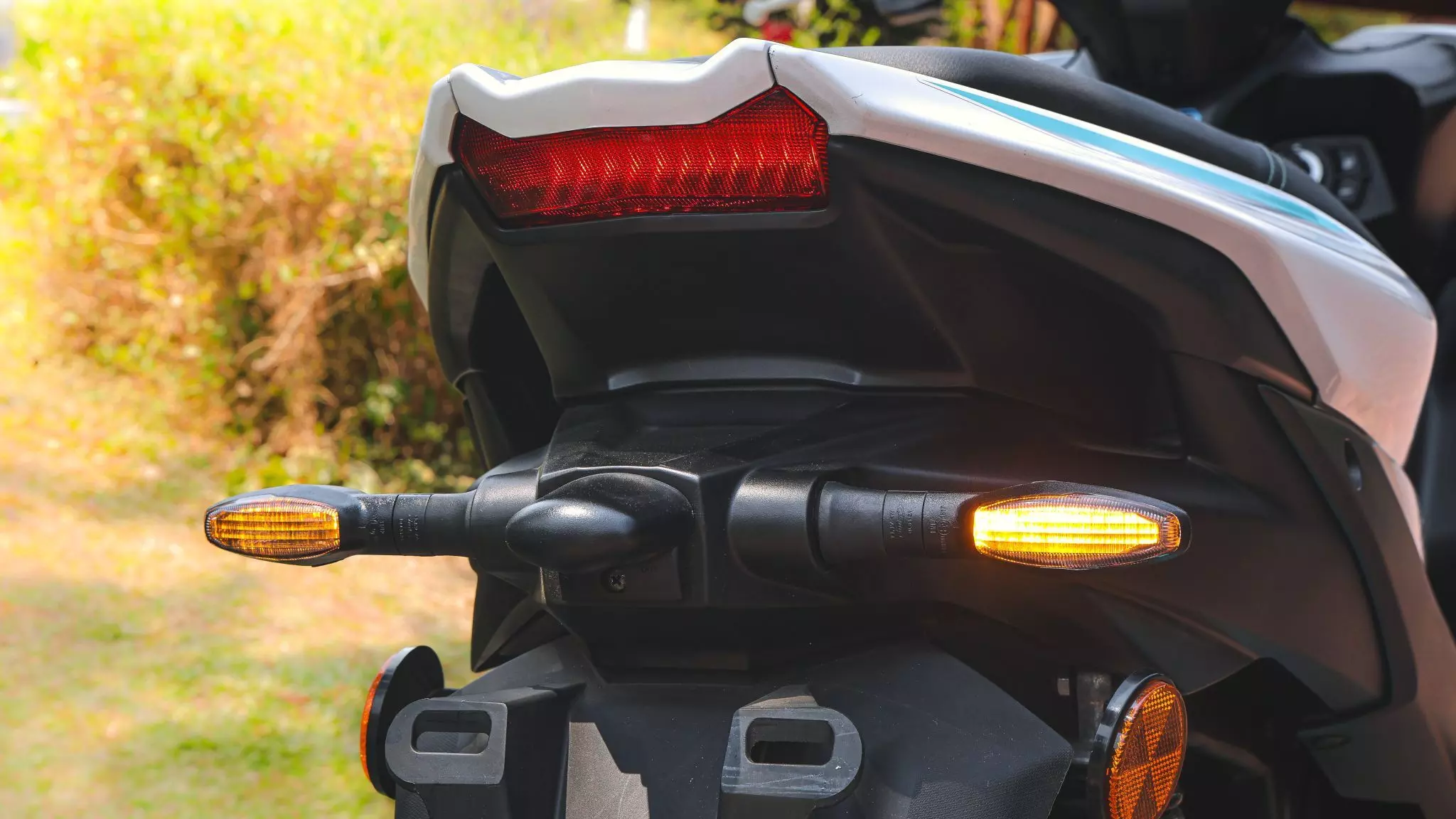 Visually, the Yamaha Aerox e remains largely the same as the ICE Aerox. And even after a fair amount of time on our roads, the Aerox still manages to stand out – in a good way. The Aerox e continues with sharp, aggressive styling – twin LED headlamps with DRLs, sculpted bodywork, and fat tyres, including a 140-section rear. What you will definitely be pleased about are the LED indicators at the rear, which are slimmer than before, and better suit the overall package.