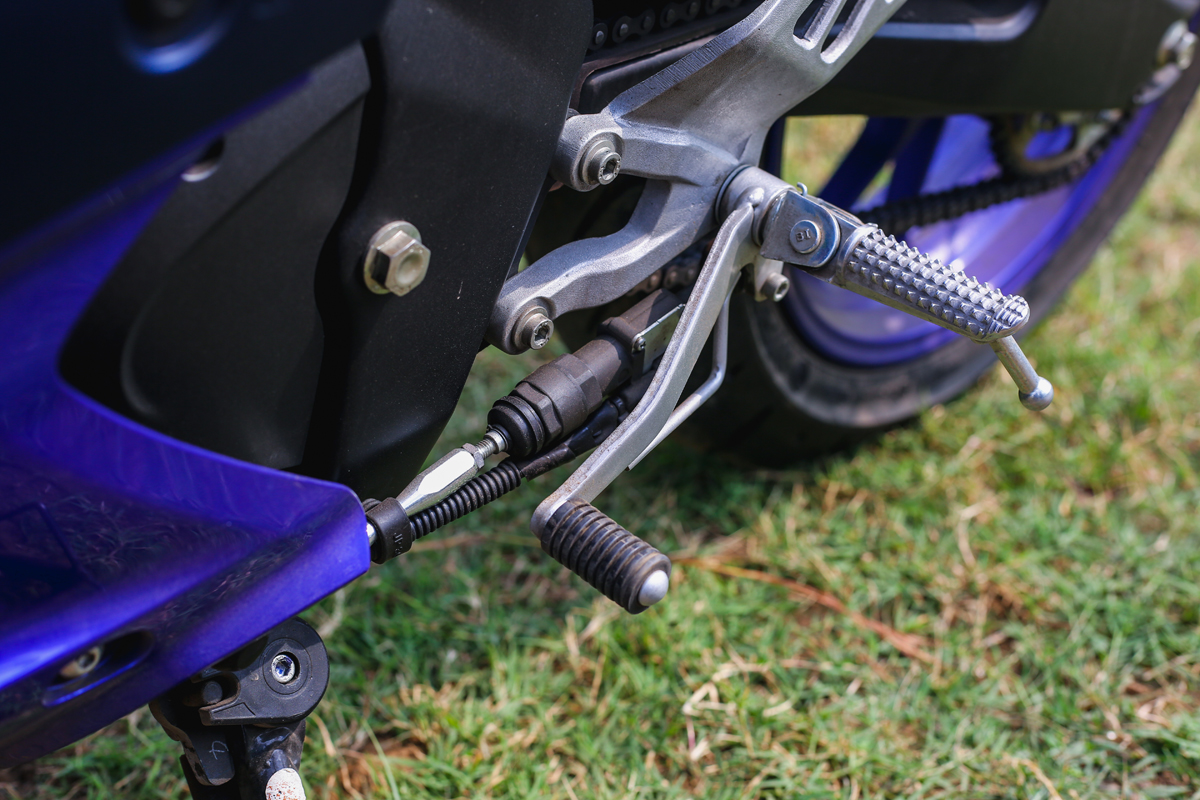 The quickshifter on the R15 V4 works well in the higher end of the rev rangeSince this is the Racing Blue colour scheme, it gets a quickshifter as standard. It is optional on the standard colour schemes but comes as standard kit for the R15M and MotoGP editions. The quickshifter is not a gimmick. It works above 2000rpm and 20kmph and is rather smooth when shifting higher up in the rev range. The shifts are however slightly clunky if done when the tacho needle is in the lower end of the range so you’ll be better off using the clutch for the slow speed shifts. Continuing with the theme of rider aids, the R15 V4 (all variants) get a traction control system as standard. Thankfully, the system is pretty non-intrusive and you can see the TC indicator light come on if you are a little extra generous with your throttle input on loose surfaces. You can also switch the system off altogether. But it is nice to see manufacturer's spec ‘entry-level’ bikes like the R15 with kit like this, something you’d otherwise only find on significantly higher-performance vehicles.