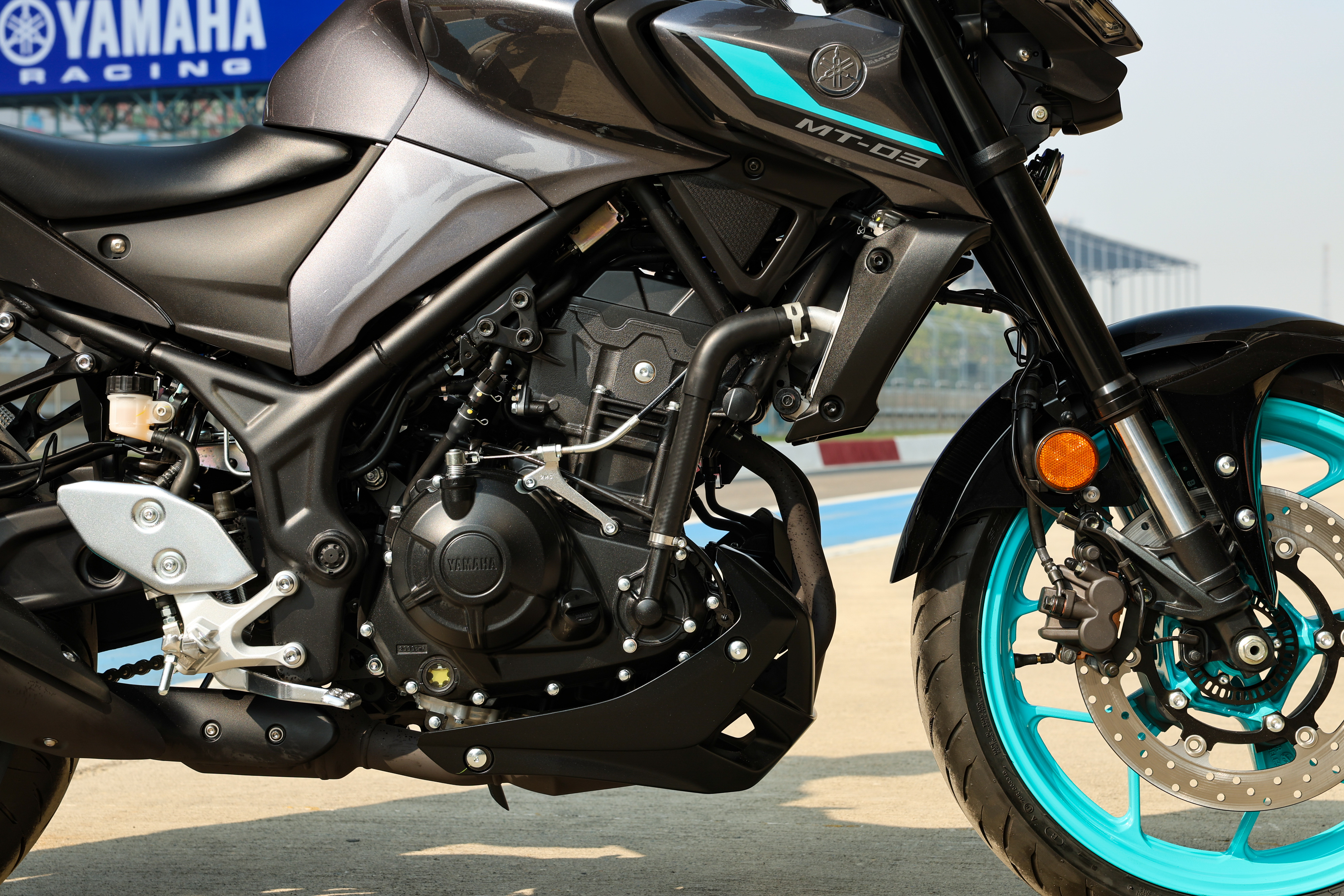 The MT-03 gets the same engine as the R3 and has the same seat height and ground clearance as its faired sibling. It is also built on the same chassis