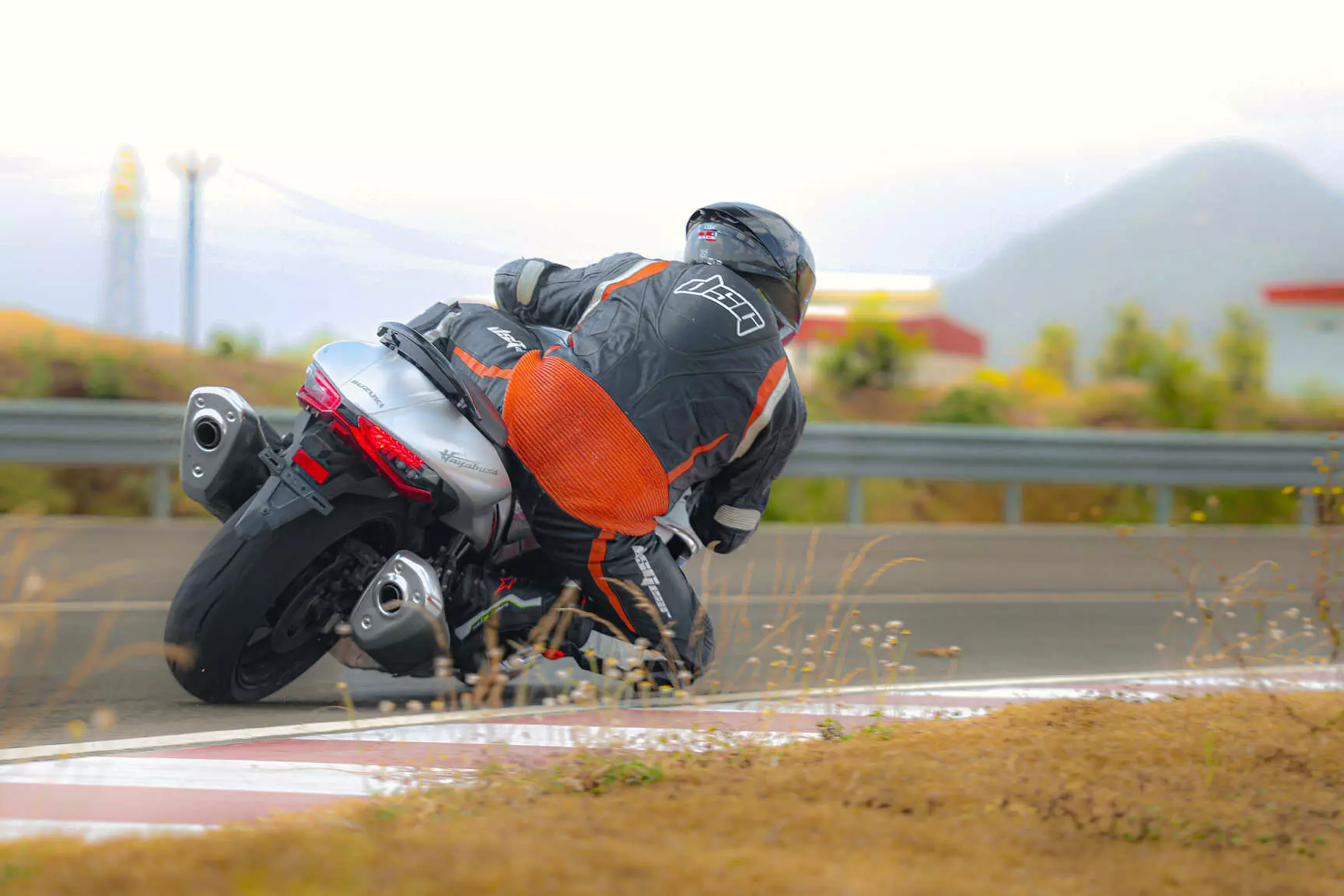 The dynamic handling track is a short one-odd kilometre track that has a series of chicanes, long sweeping corners and tight corners as well. Not exactly the sort of track that you’d want to ride a Hayabusa on. That being said, any opportunity to ride a Haybusa is a golden one. I want to preface my impressions by saying that the Steel Brace SP-01 is not an out and out track tyre, but an all-round performance oriented tire. With that in mind, we headed out to ride and right off the bat, the tyres were quite impressive. They warmed up in no time and attacking corners felt very natural.