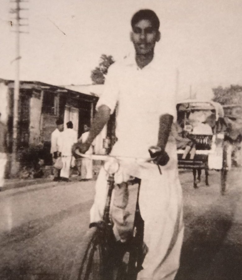 Young Brijmohan Lall Munjal riding bicycle in the 1940s