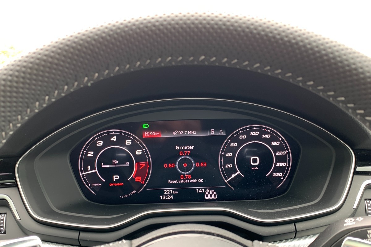 The RS 5 Sportback gets Virtual Cockpit Plus, featuring a G-force readout as well