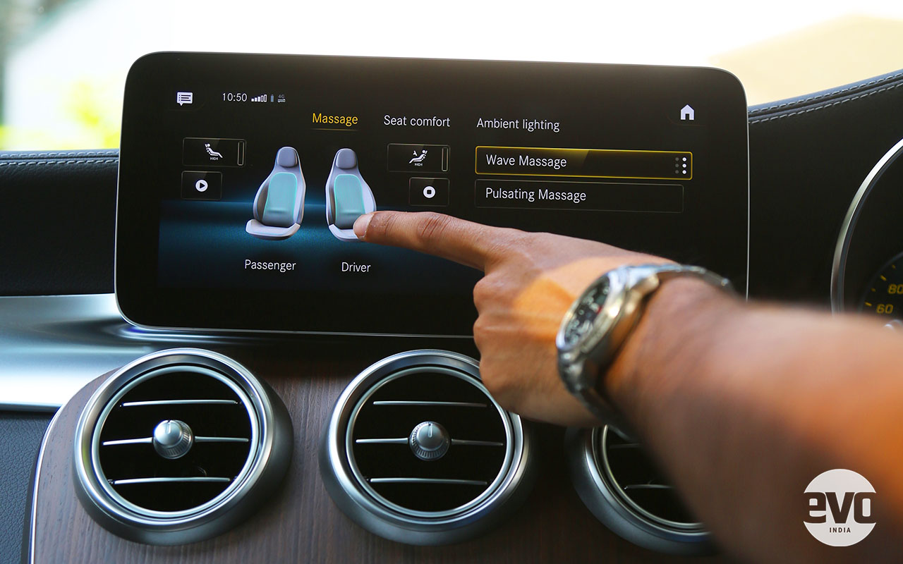 Another feature integrated into the infotainment display are the front massage seats. Yes, there are now massage seats on a GLC. In fact, the 2021 GLC is the only Mercedes-Benz in India to come with front massage seats as standard. Even the mighty G-Class requires you to tick a box and drop some extra long greens for it (Rs 3.45 lakh). The massage function on the GLC has two programmes — Wave and Pulsating. The two aren’t very different from each other, and aren’t very configurable either, since you can’t change the intensity of the massage. But that isn’t too much of a drawback, the massage function works well and either profile should keep your body more activated on long hauls or help you wind down after a long day.