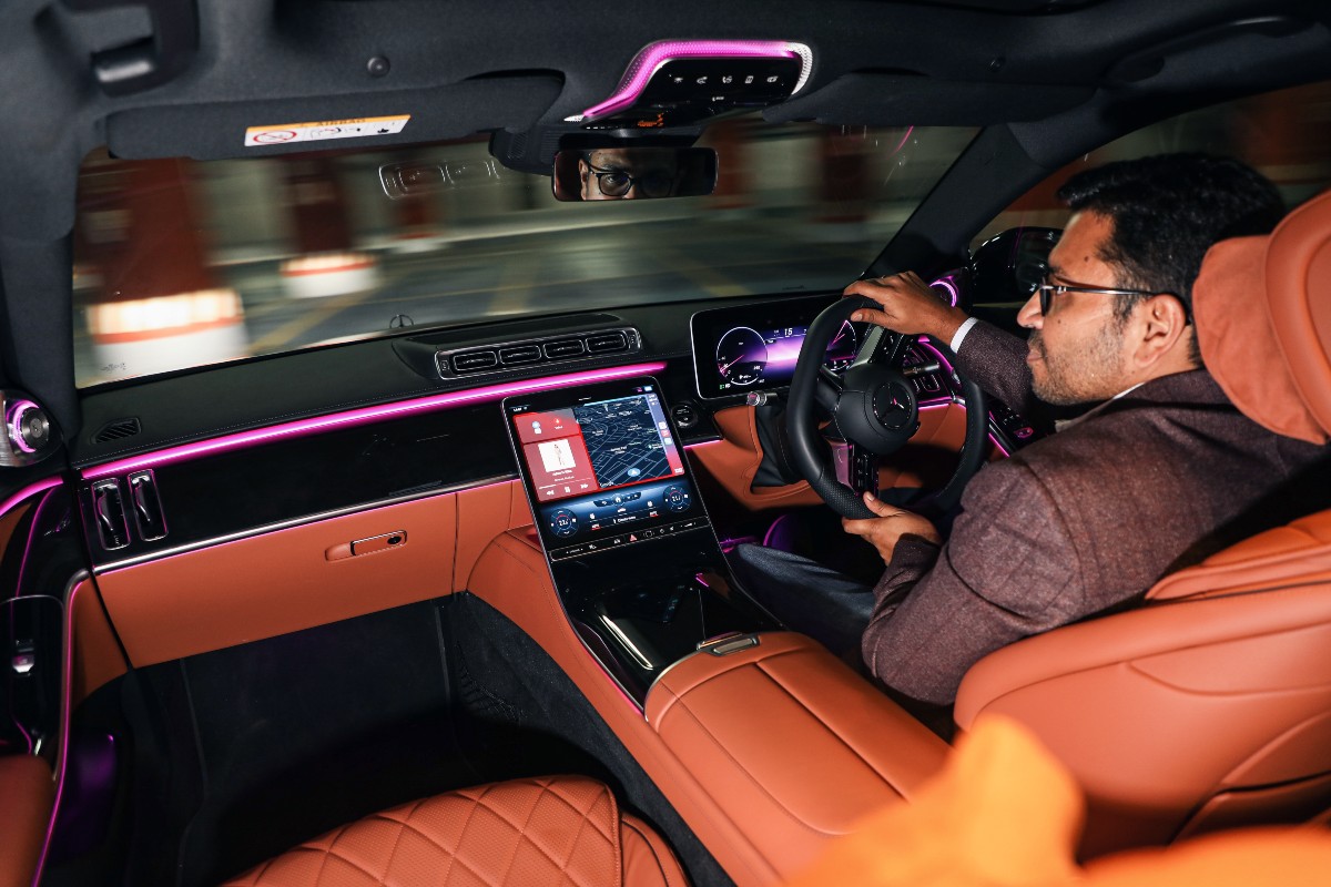 Connectivity? You get wireless CarPlay so leave your phone on the wireless charging pad and forget about it. MBUX recognises Indian accents so you tell the lady, ‘Hey Mercedes! I’m stressed’, and it will switch on the Joy program in the Energising Comfort which plays a gold-themed graphic on the infotainment, matched by gold-hued ambient lighting, calming music, turns on the seat massagers and gets you to relax. All seats get massaging (19 motors!) together with comfort and exercise modes, plus heating and cooling, and all are operated individually.