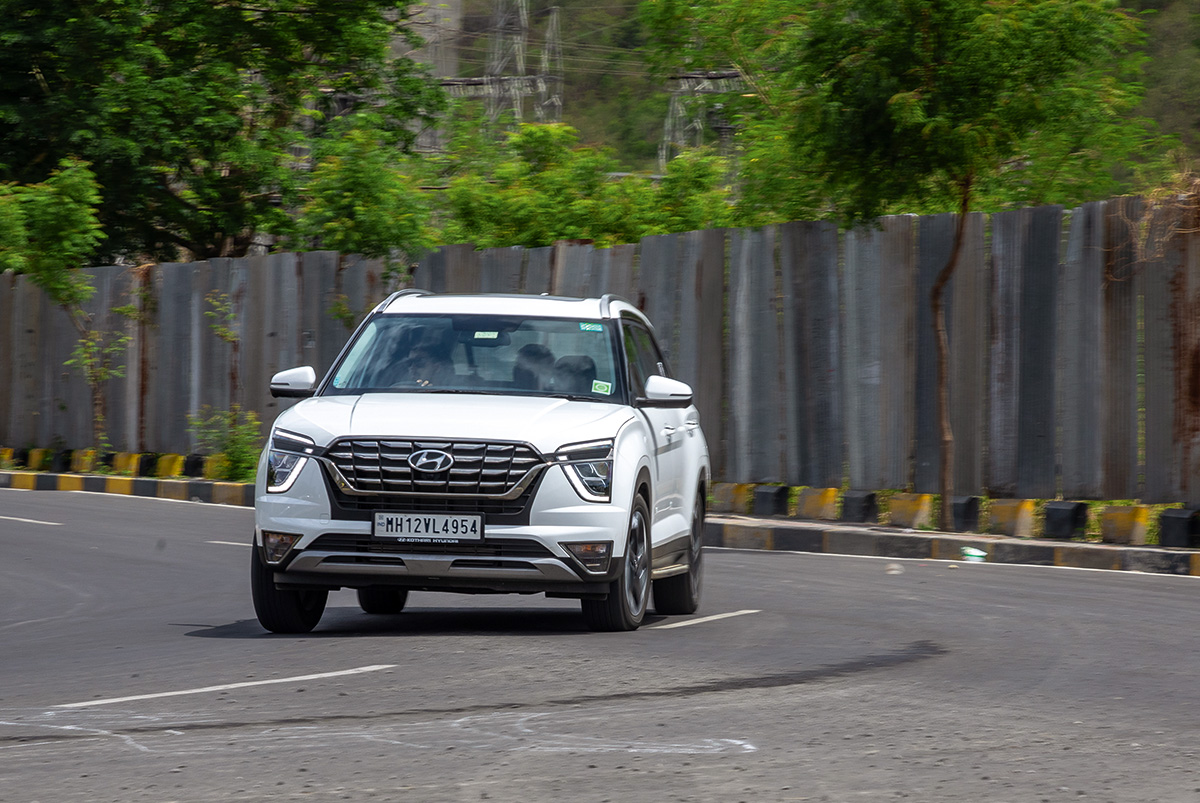 The Alcazar does have a fair bit of body rollOn the outside there are just two minor cosmetic changes on the new Alcazar. A smaller grille up front and extra badging. To signify its new powertrain, the Alcazar gets a ‘Turbo’ badge on the tailgate and a DCT badge on the front right fender. Other than that, you won’t be able to differentiate this car from its previous version if you’re looking at it from the side or the back. On the inside, the Alcazar continues to boast intuitive digital real estate with a 10.25-inch digital instrument cluster and a 10.25-inch central infotainment touchscreen. It also continues to be just as comfy and feature loaded as before with snug seats, an 8-speaker Bose surround sound system, a panoramic sunroof, ambient lighting and an air purifier, among other kit.
