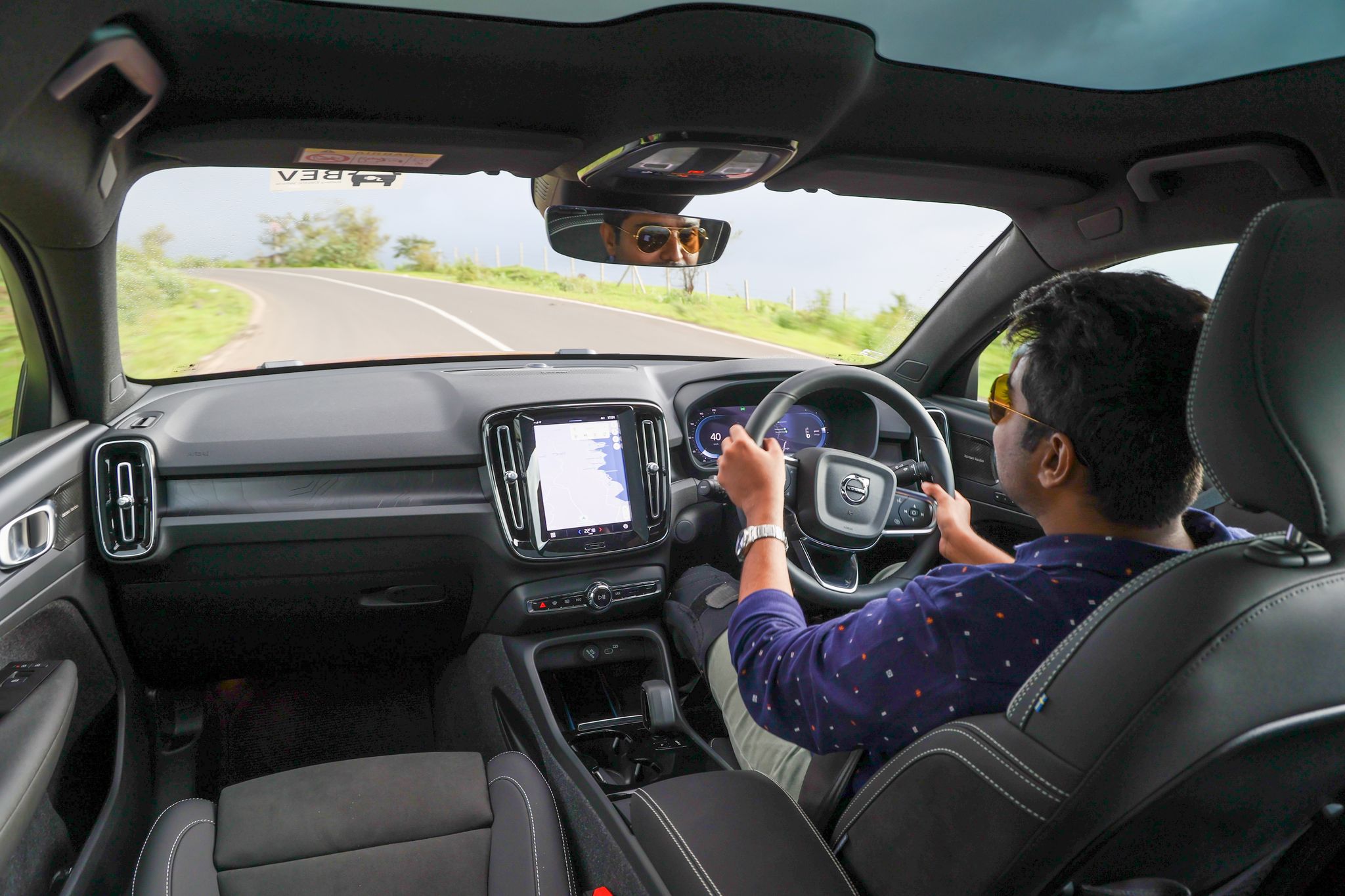 The Volvo C40 Recharge produces 402bhp of peak power and 660Nm of torqueYou get into the Volvo C40 Recharge with the key, put the gear selector into drive and quietly get out of the parking lot. There’s no start/stop button like many new EVs are adopting, and since the infotainment is powered by Google, you don’t need to connect your phone to use Google maps. Life behind the wheel of the C40 is as easy as it comes. A battery on full charge, a beautiful strip on winding road in the Sahyadris and relatively low traffic commute to the shoot location. The day was looking good from behind the wheel. The C40 Recharge shares its platform and everything up to the B-pillar with the XC40 Recharge. Beyond that is what makes this car interesting, so I find a nice spot near a lake and explore more.