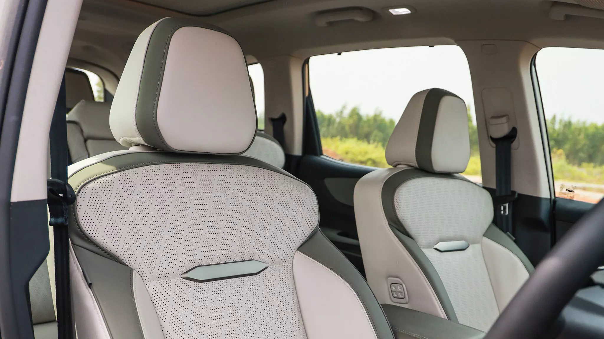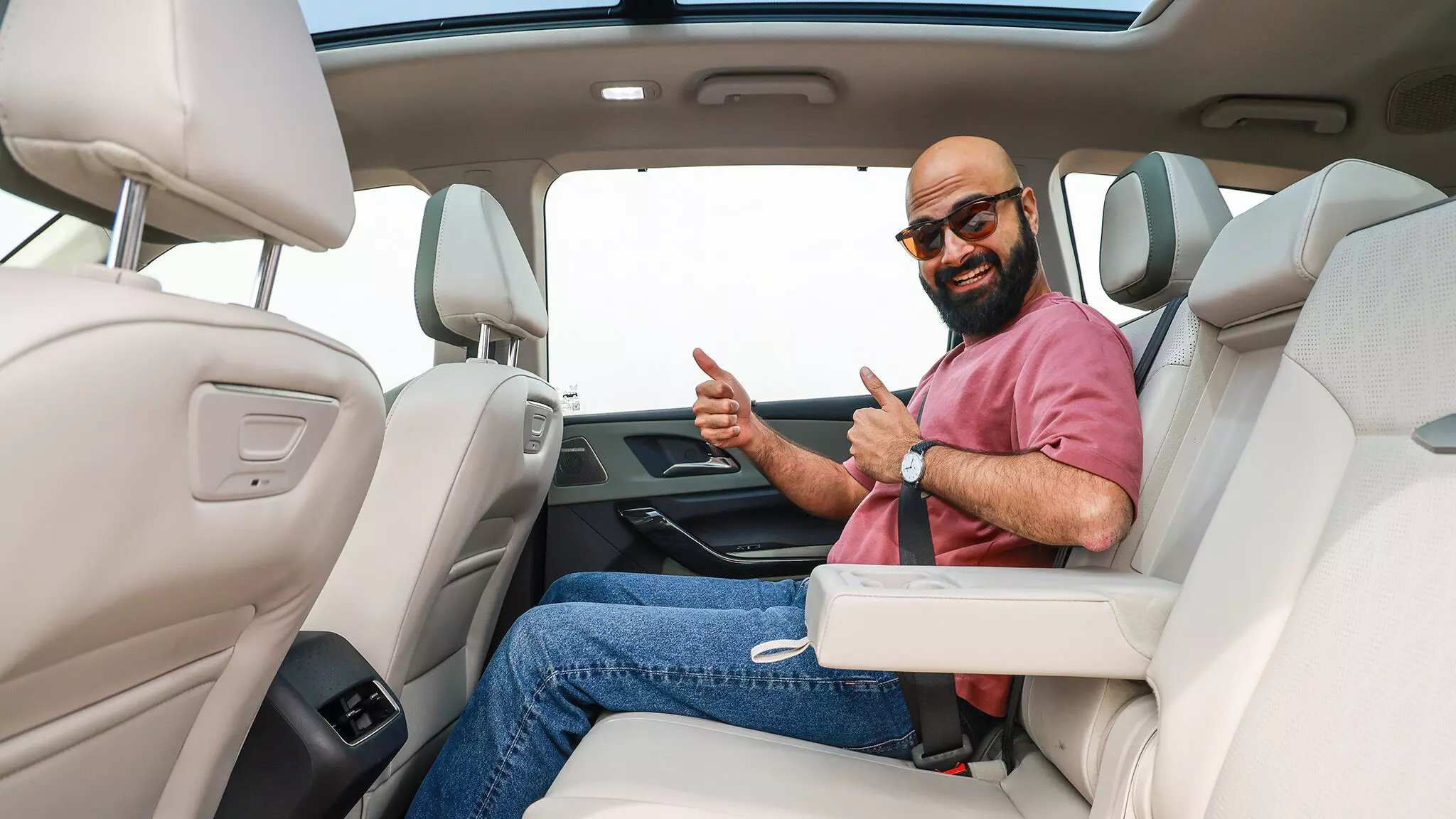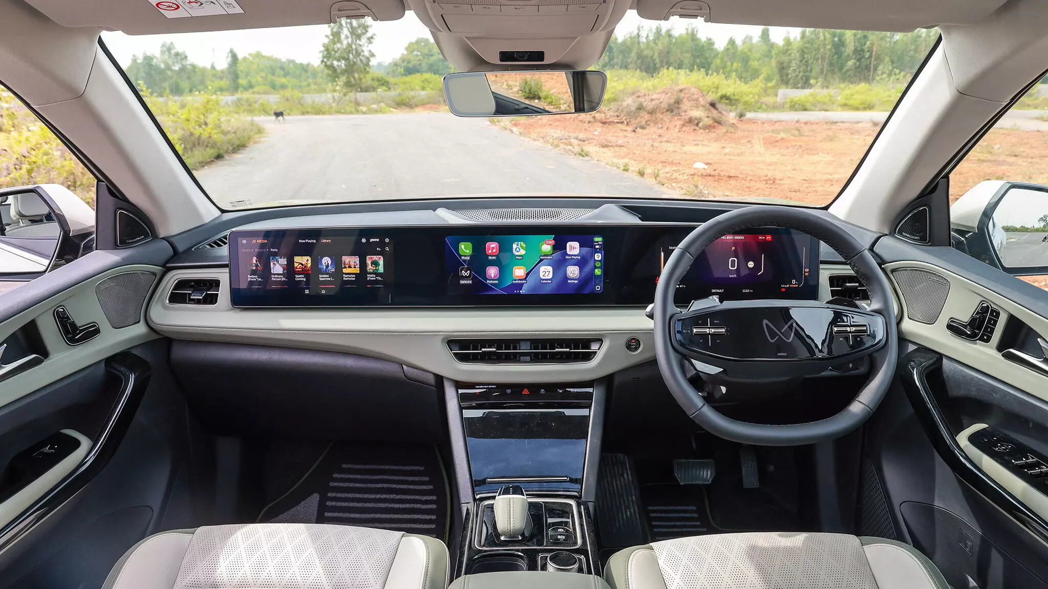 If you’ve even in the 9E, the cockpit is a familiar space. Same steering wheel, same three screens staring you and your co-passenger in the face, and quality and materials are to the same level. The interiors get a beige and sage green theme. The beige may be prone to stains but its very likely a new variant or alternative interior trim will address this at a later stage. That said, I’m not a fan of the large piano black panels used on the centre console. Neither am I a fan of the fact that oft-used controls like the AC and ventilated and in the screen.