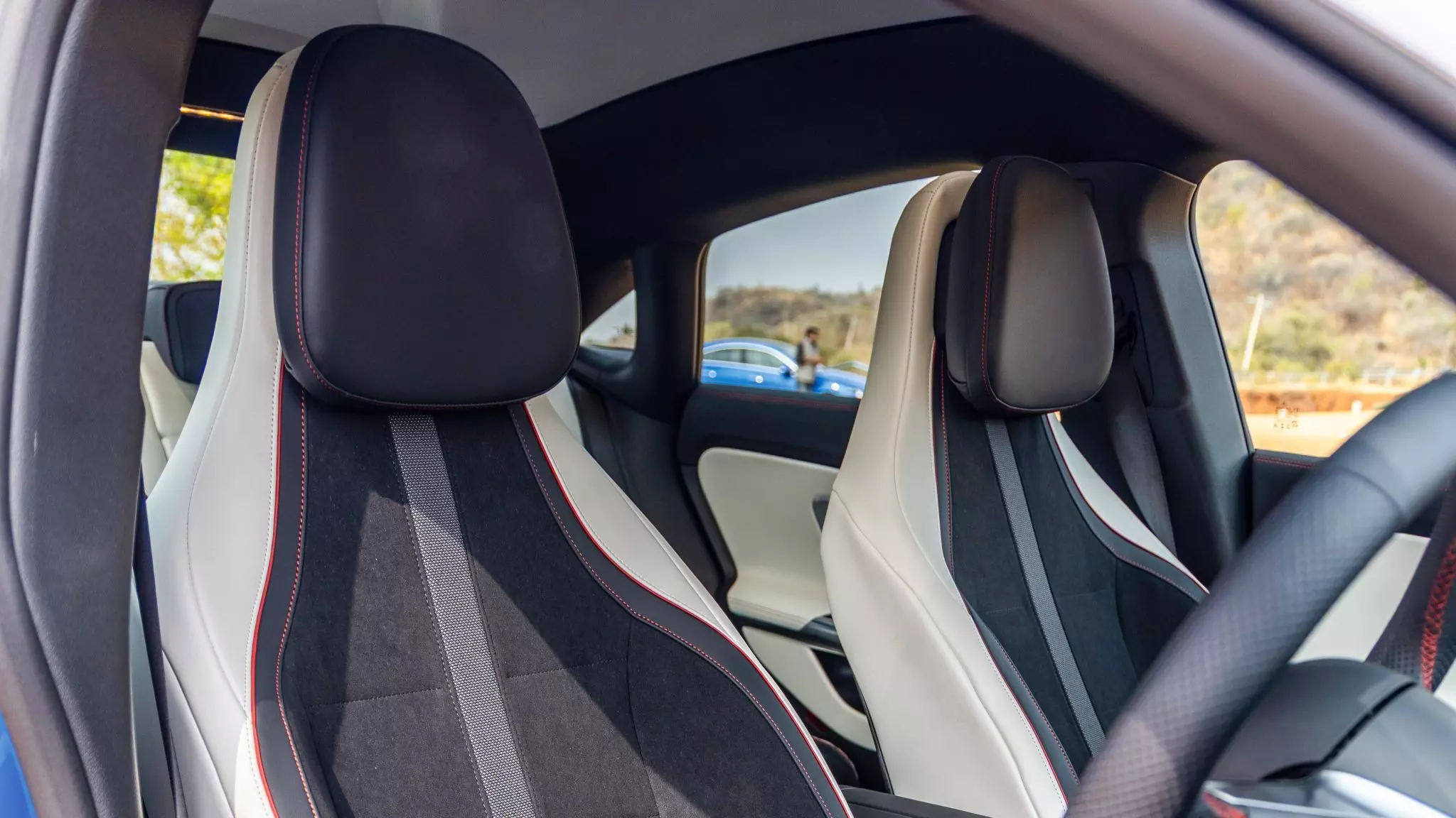 Open the door, and you realise more work has been put into the CLA’s interior. The dashboard houses a flat end-to-end panel featuring a 14-inch central touchscreen and a 10.25-inch digital cluster, along with a star-studded illuminated panel ahead of the co-driver. International markets get a third screen option, though it’s not offered to us yet.
