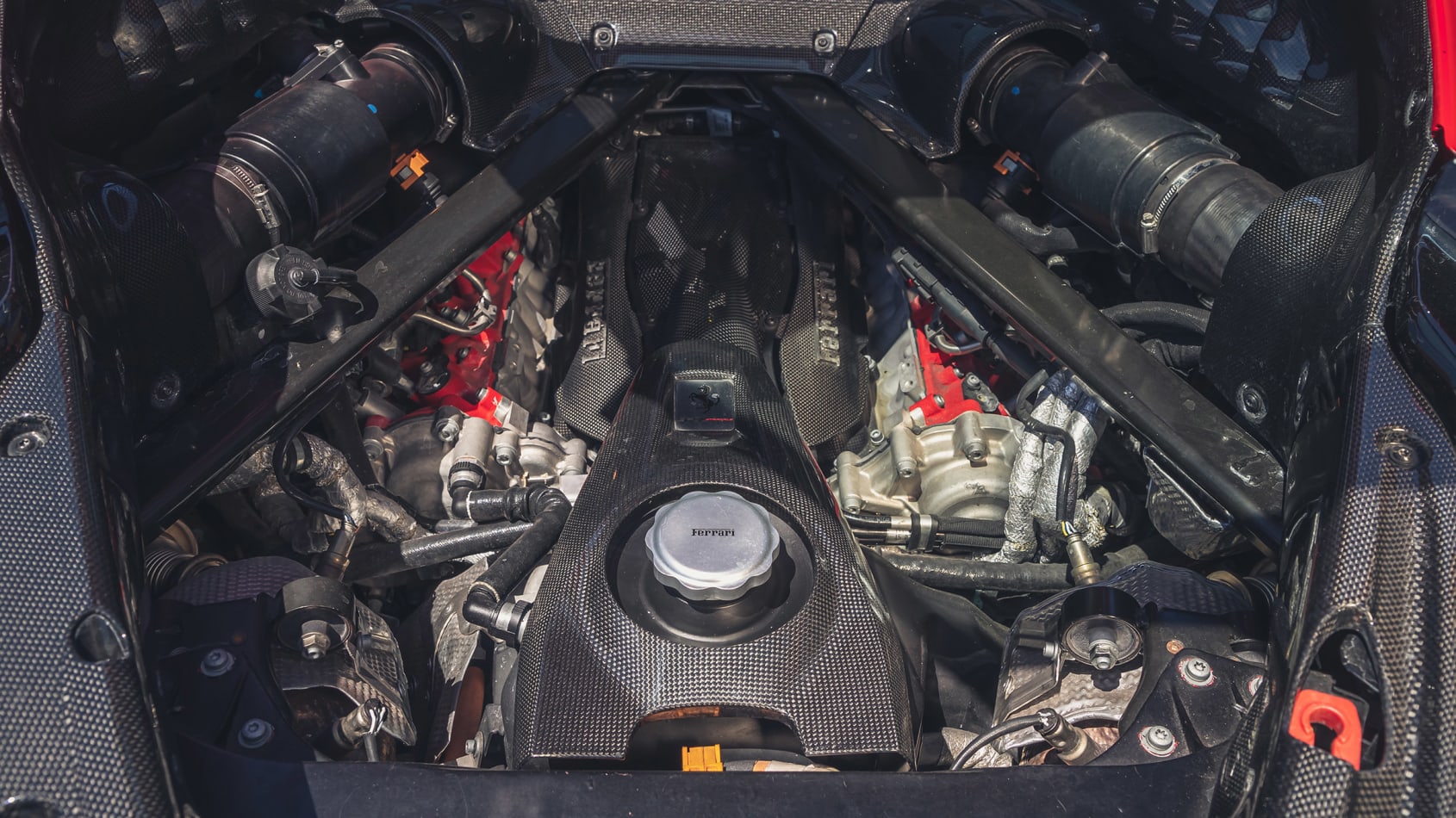 By comprehensively re-engineering the award-winning 3.9-litre twin-turbocharged V8, the SF90’s petrol engine has been bored to increase capacity to four litres. It’s significantly lower, too, thanks to radically altered intake and exhaust systems. A narrower cylinder head design features a new high-pressure direct injection system which improves combustion and efficiency, while the turbos employ electronically controlled wastegates to improve emissions.