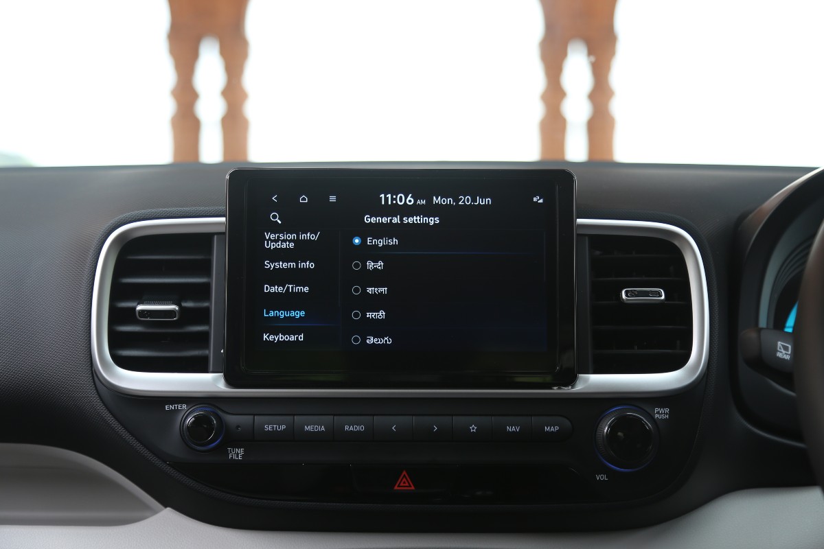 The layout of the dash is familiar with an 8-inch touchscreen for infotainment, which is now updated to support OTA (over the air) updates to the firmware in addition to the de rigeur wireless Apple CarPlay and Android Auto connectivity. You also get Home 2 Car (H2C) Google Assistant and Amazon Alexa connectivity baked in. In fact, connected car tech was the Venue’s trump card when it was launched, and Hyundai’s own Bluelink now gets more than 60 additional functions, including support for 10 regional languages. There’s also something called 'Sounds of Nature' in the infotainment which can pipe out the sounds of a forest or the seaside should you need a bit of peace and quiet in traffic, and it would be interesting to try it out in real life traffic conditions.