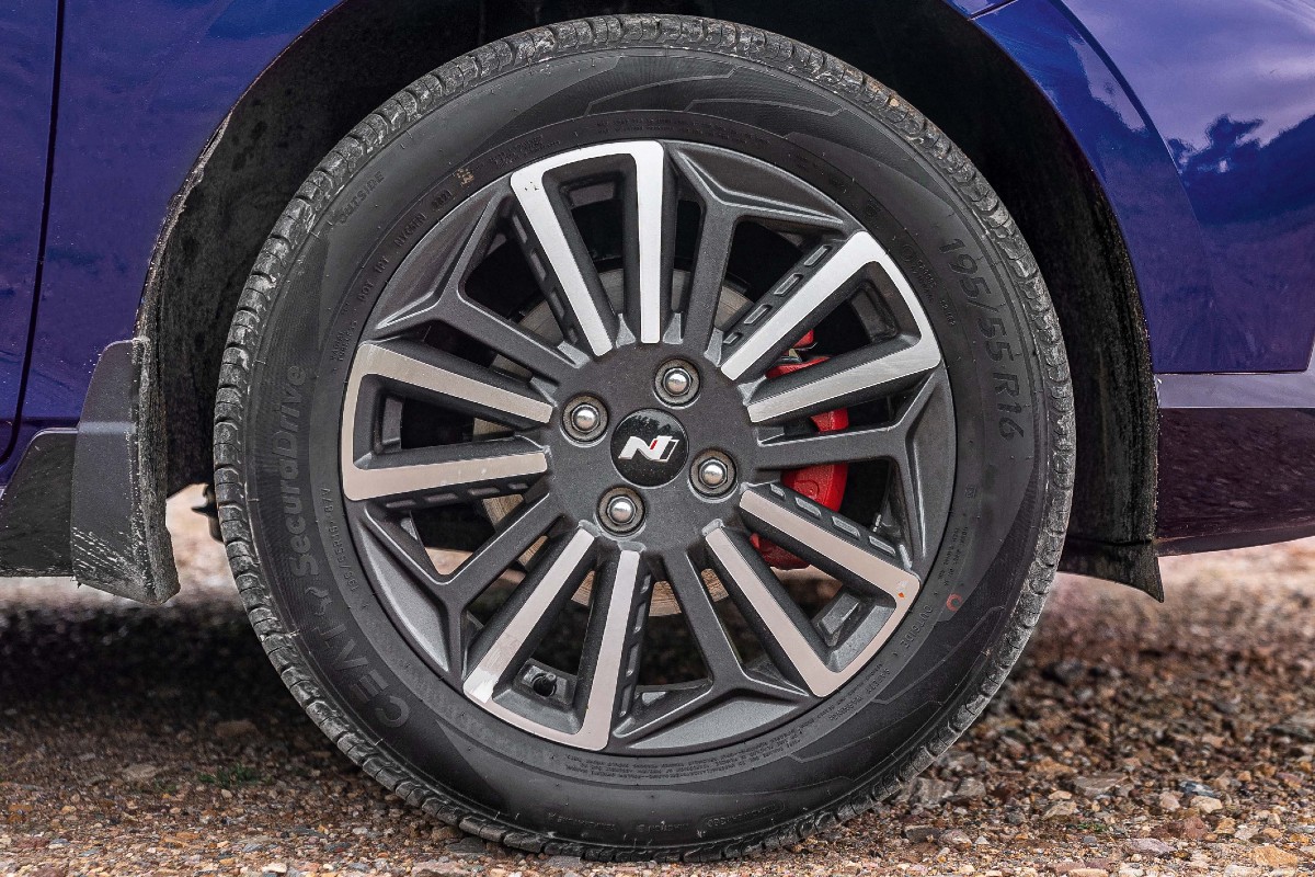 16-inch alloy wheels get a different design on the i20 N LineOver at the side, the i20 N Line gets a new set of alloy wheels but they remain the same size, 16-inches, as the regular i20’s. 17s would have looked so much better but maybe that might have necessitated fresh homologation while also impacting the ride quality (not to mention making the i20 more expensive). The i20 N Line also gets red inserts on the side skirts, along with red front brake callipers. Over at the back, you get a sportier looking bumper with a nice diffuser diffuser-like effect and a great-looking set of twin-exhaust tips. Also new and exclusive to the i20 N Line is the shade of blue on the car that we tested.