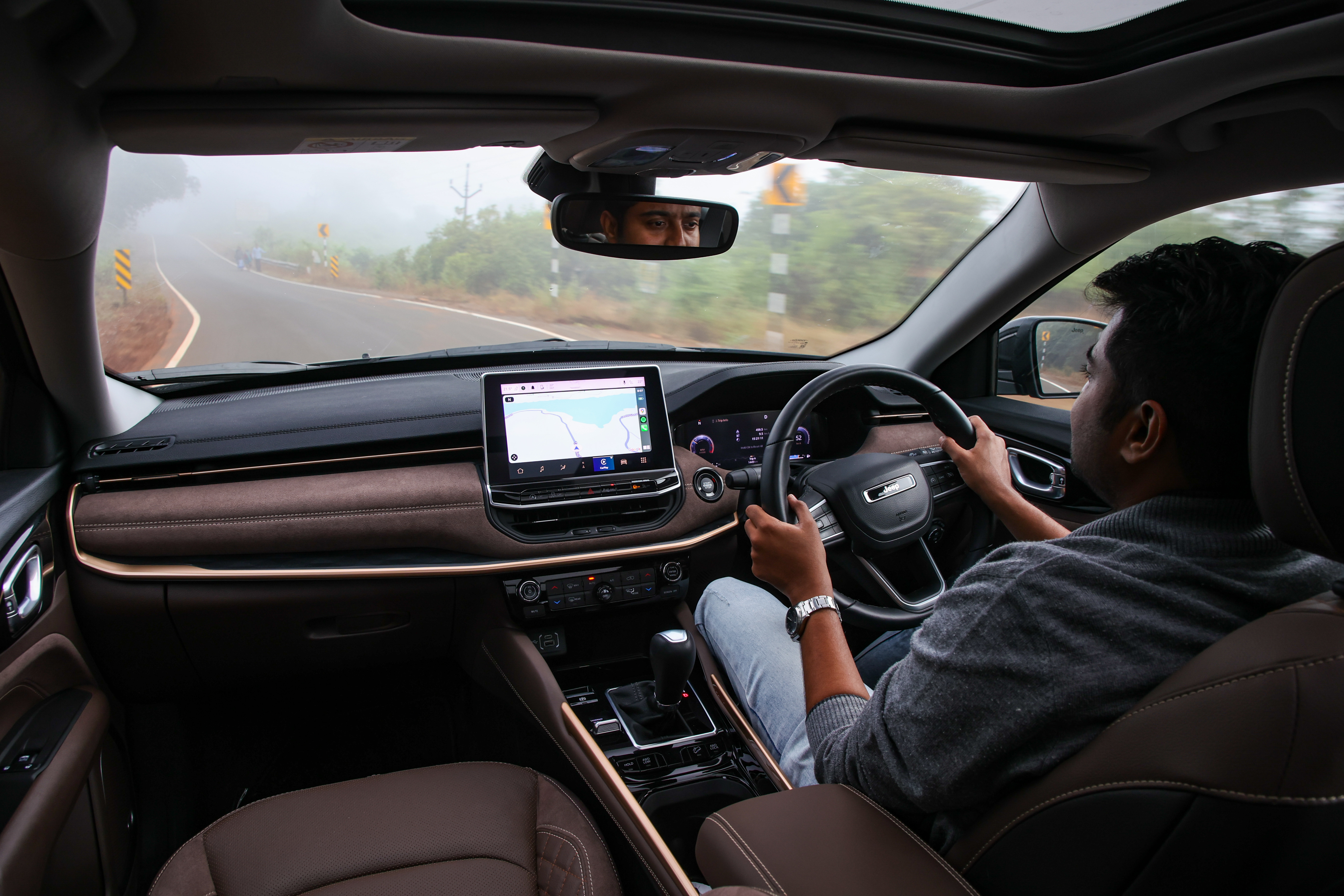 The Meridian continues to be powered by the tried and tested 2-litre Multijet II diesel engine that makes 168bhp and 350Nm, and in the Overland, you can only choose the 9-speed AT gearbox for both the 4x2 and 4x4 variants. The engine is refined although you do hear it as the revs rise, but the copious amounts of soft touch materials and good damping soak in the drone of the diesel mill. The car in these pictures is the 4x4, employing the Selec-terrain AWD system with a 4-Low crawl ratio that uses the 1st gear in the 9AT. On the road, the Meridian starts in second gear at all times. Dynamics on a winding road are impressive considering the Meridian’s size and weight, with the FSD dampers doing a good job of ironing out undulations on imperfect roads. The brakes work very well too, but are sadly let down by the tyres, which squeal at the slightest dynamic demand from the driver. A larger tyre with a better compound will do the Meridian’s handling some good. While the Meridian is nimble for its size, it's not as agile as the Tiguan or the Kodiaq. The elevated seating position and solid feel behind the wheel, though, reinforce the Meridian's SUV identity.