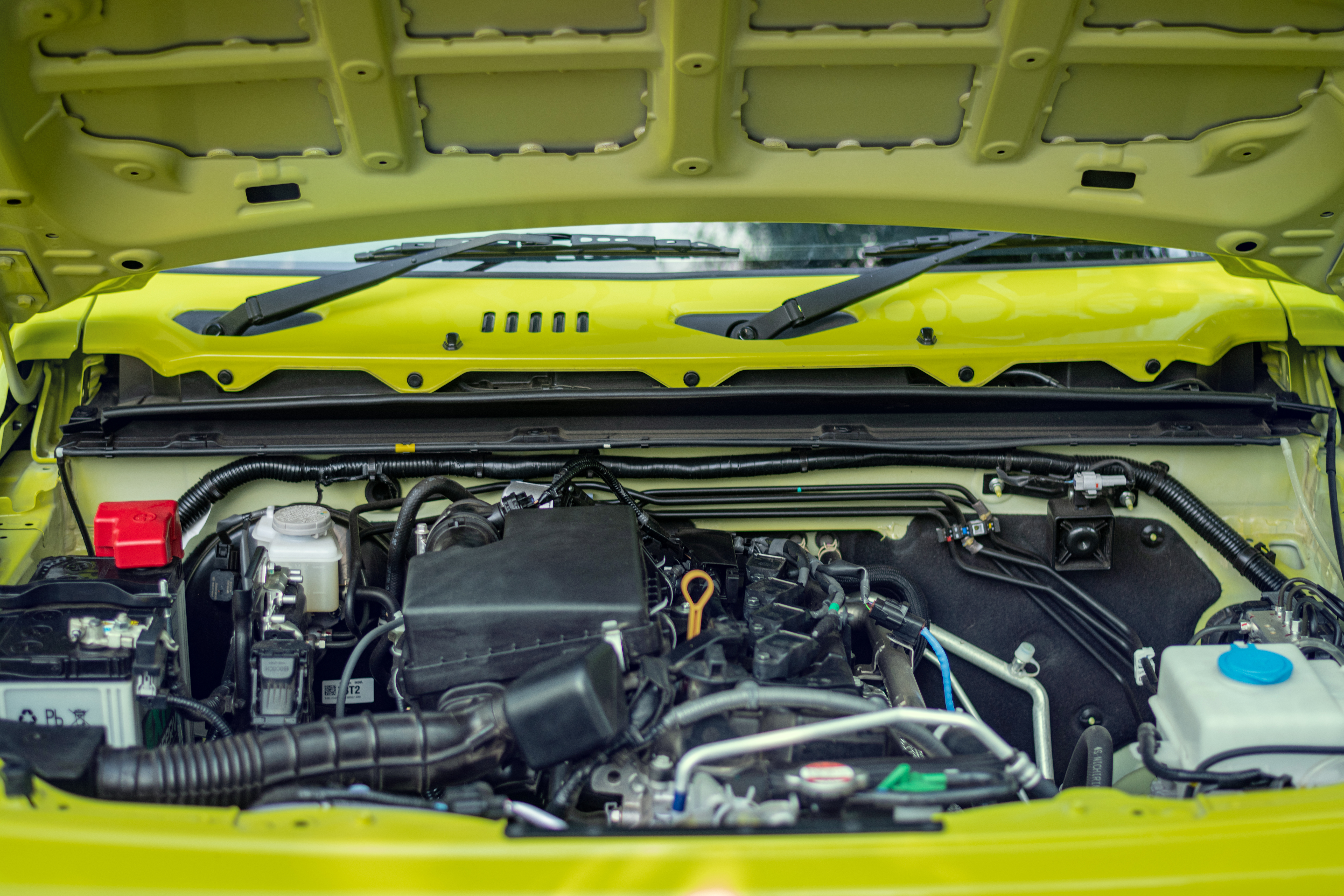 But there’s a catch. And that’s the engine which is probably my biggest grouse with the Jimny overall. This is the K15B engine, one generation behind the K15C engine on the Grand Vitara, Brezza, Baleno, Fronx, Ertiga, Ciaz, XL6, every other Maruti Suzuki really. It gets auto start-stop but no mild-hybrid tech to boost fuel efficiency and, crucially, unlike every other Maruti this engine is mounted longitudinally.