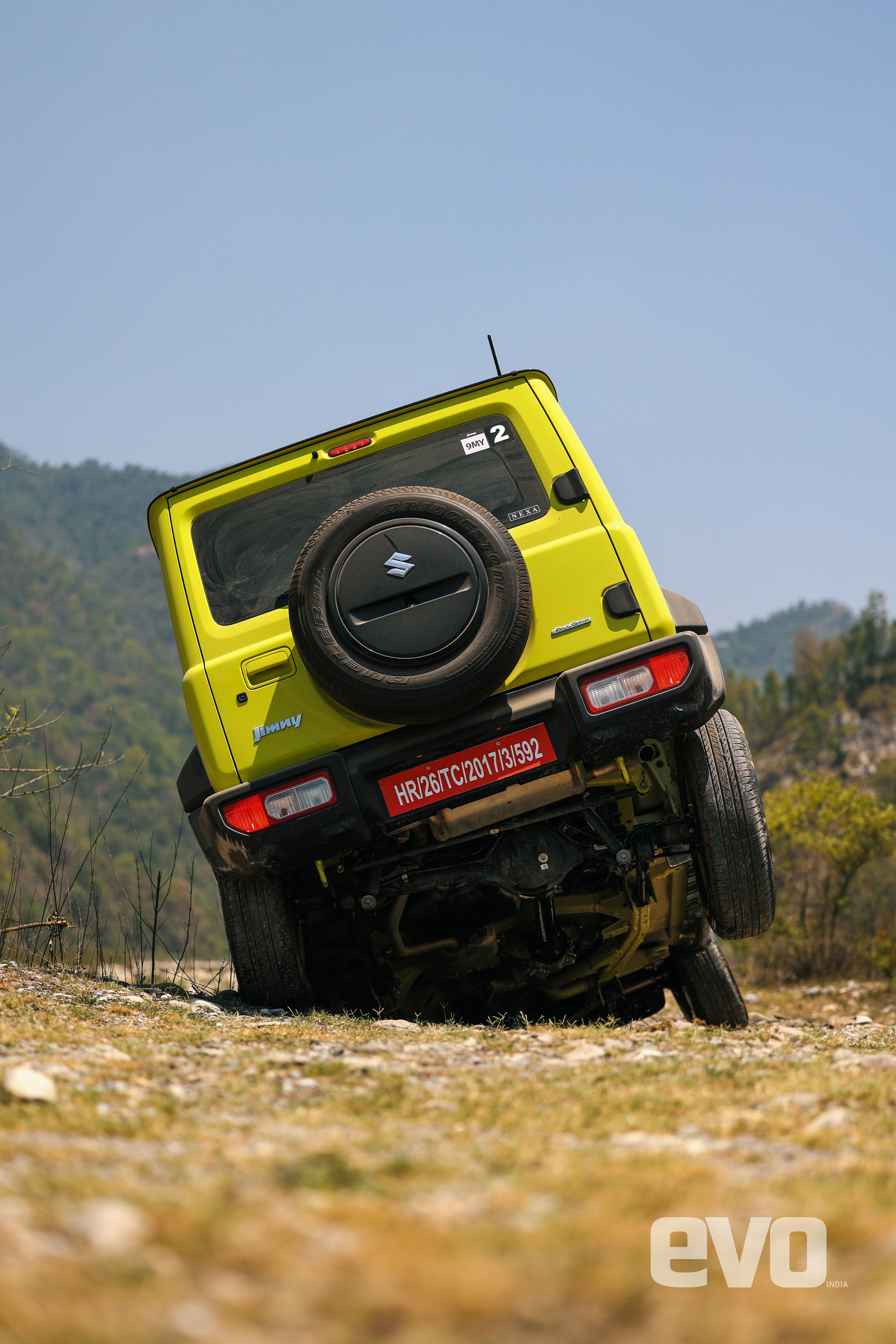 So much of the Jimny’s capability, so many of its strengths are down to how light it is. Let me give you an example. The first thing Maruti Suzuki did after handing us the keys to the Jimny was point us in the direction of a dry river bed. Getting to the riverbed involved tacking a rutted trail a few kilometres long. Nothing a regular car couldn’t tackle, though most cars would be babied through it. Proper, robust body-on-frame SUVs would be able to tackle it with more speed, thanks to higher ground clearance and longer travel suspension making it far more stress free. A Gypsy of yore would buck like a bucking bronco — its leaf springs refusing to let the rear settle. But even with more modern body-on-frame SUVs with more sophisticated suspensions, there’s a typical body-on-frame shimmy and shake that never allows them to feel completely settled over such terrain. The Jimny, on the other hand, rode beautifully. You could drive it with abandon down that trail, confident that the suspension would soak up whatever came its way. It weighs just 1210kg — for perspective, that’s half a ton less than the Thar — and with less weight to deal with, the springs (and I mean coil springs, not leaf springs like the Gypsy) and dampers don’t need to have the same firmness to deliver good body control. I have to remind you that the Jimny still runs solid axles and despite that it was ironing out imperfections, soaking up bumps and letting you carry genuine speed without ever feeling uncomfortable inside.