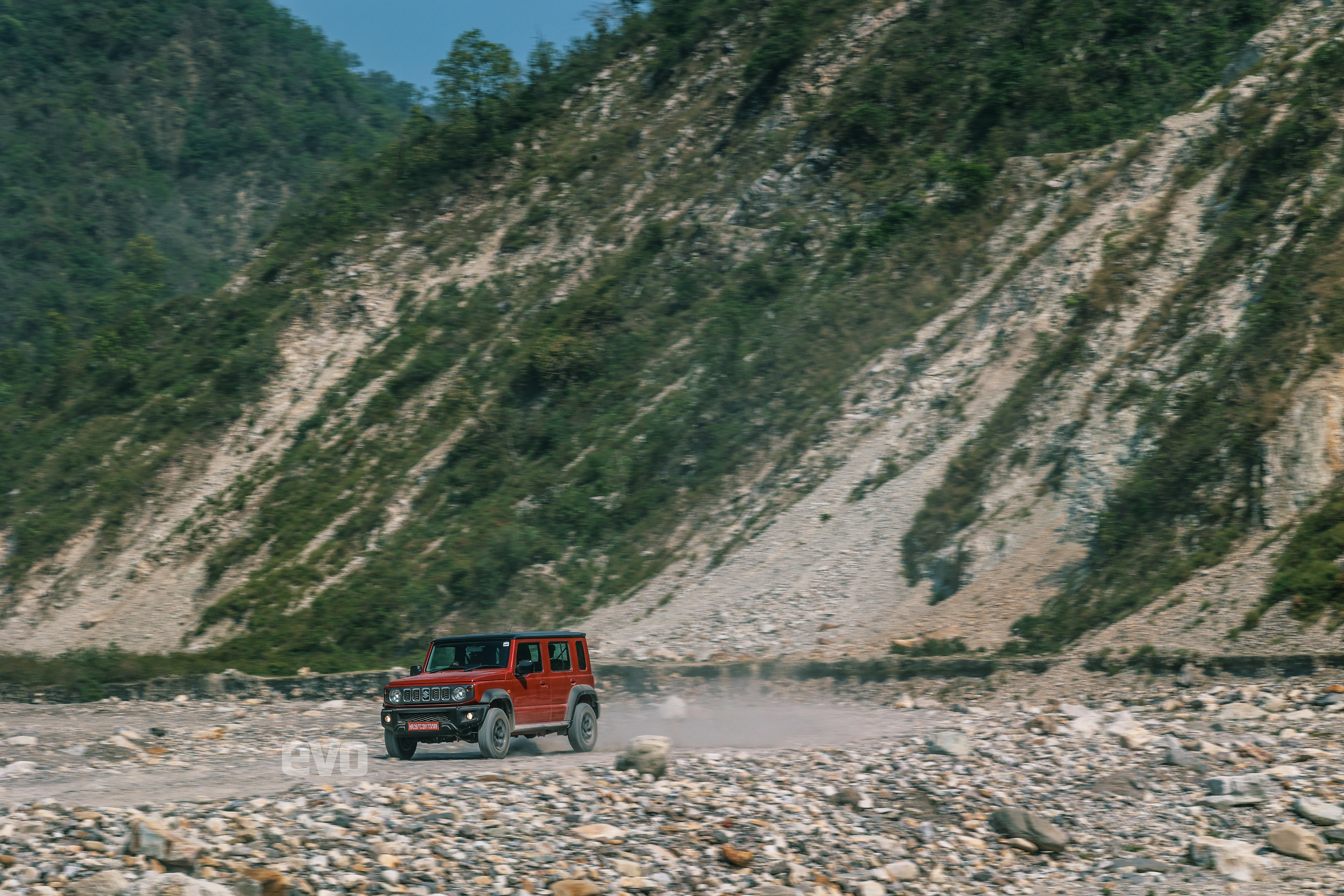 The Gypsy is a legendary off-roader. Even today, people swear by it. In the mountains, every second family has one because it is the only 4x4 that can actually get anywhere once it's fully snowed in, thanks to the petrol engine making it usable in sub-zero conditions and the light weight making sure it doesn’t bog itself down. Look at the RFC entry sheet and a majority of the entrants are driving Gypsys. The Jimny has a legacy it needs to live up to. The dry riverbed was our proving ground. With 4x4 (high, and occasionally low) engaged, we drove over boulders, up and down steep inclines and through flowing streams. We did pretty much everything that could be done to find the Jimny’s limits short of rolling it off a mountain, but it simply refused to stop. Again, weight plays a huge role here. Low weight makes a good power-to-weight ratio — despite just having 103.39bhp of power and 134.2Nm of torque, the 1.5-litre naturally aspirated 4-cylinder engine never felt inadequate on those hardcore off-road trails. It felt unstoppable — clambering, climbing, hocking itself over everything that came its way.