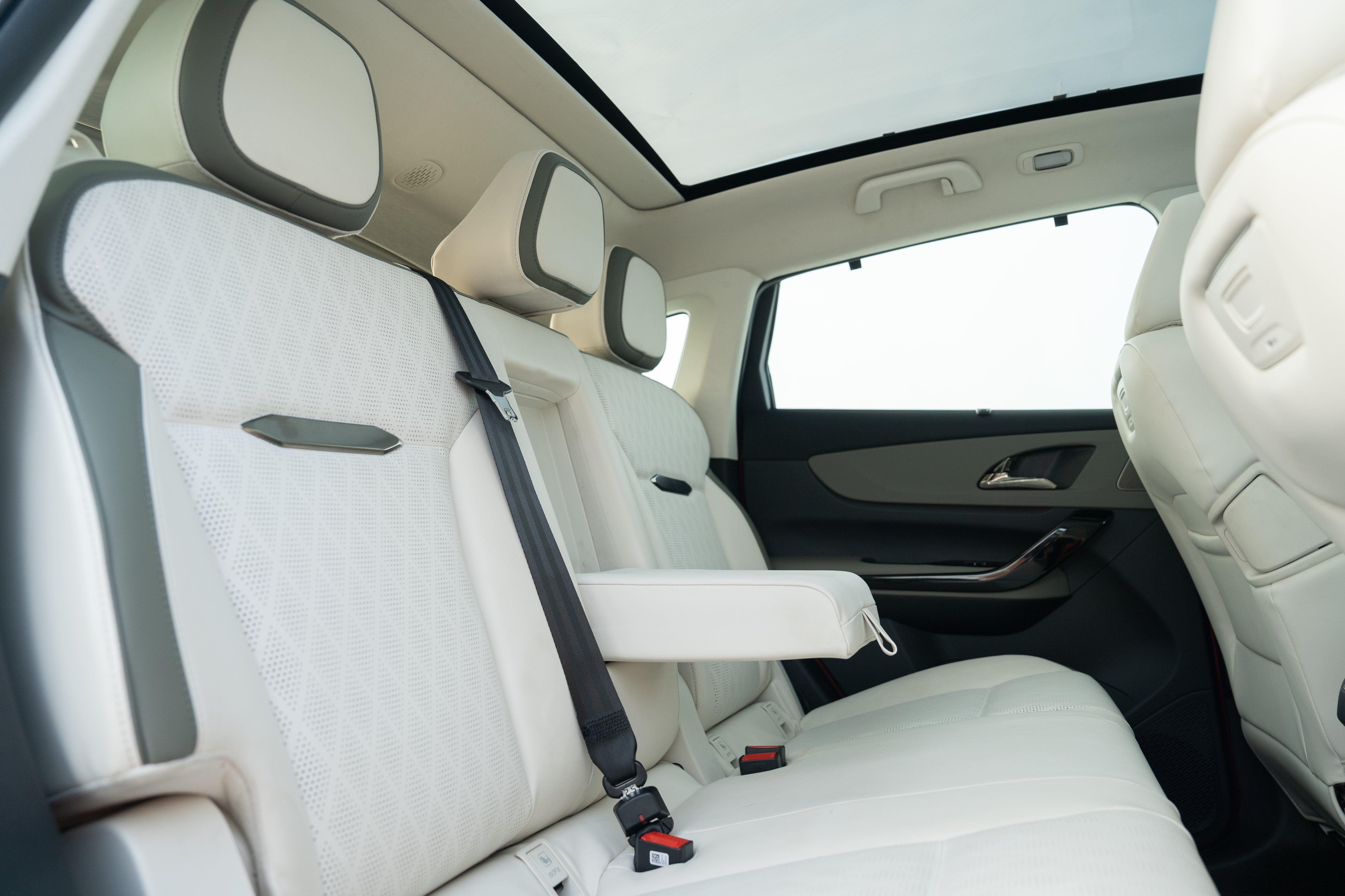 Rear seat space is excellent, with a flat floor and seating that avoids a ‘knees-up’ postureRear seat space is excellent, with a flat floor and seating that avoids a ‘knees-up’ posture. At the launch, cars displayed were equipped with tablets mounted to holders on the front seatbacks. The ‘theatre mode’ syncs the front and rear entertainment systems, enabling passengers to enjoy a movie on the go. Although the tablets are optional, this is a cool feature for long drives. Despite the tapering roofline, headroom is good. However, this body style rules out a seven-seater version. That said, the platform is versatile enough to accommodate a traditional seven-seat SUV shell in the future.