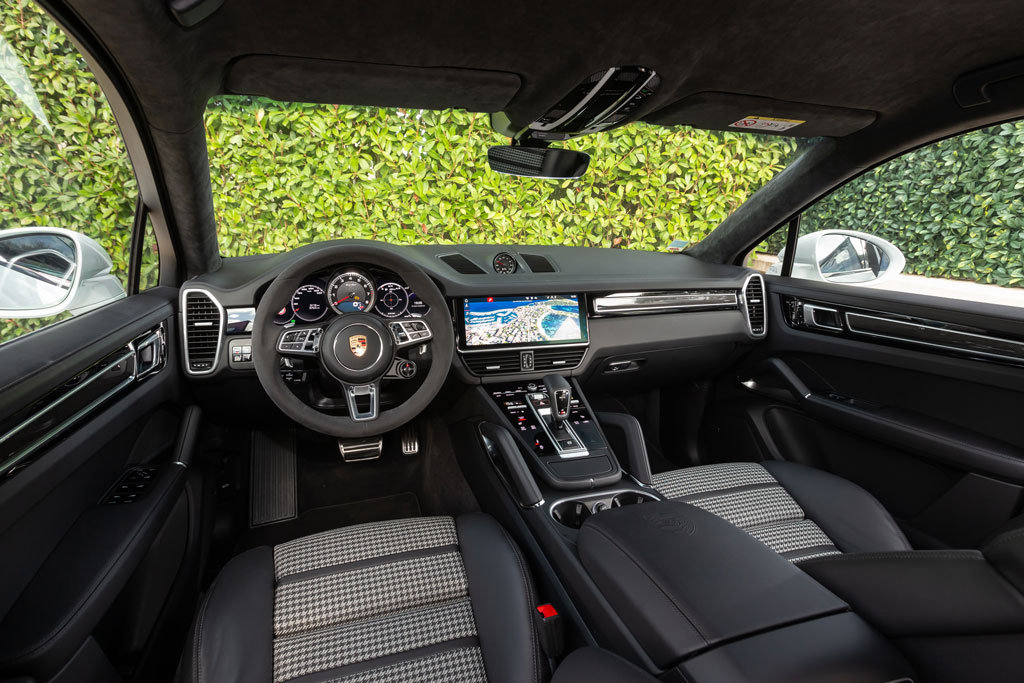 Up front, there isn’t too much to tell the two apart. A keen eye would notice a few touches that are different from the Cayenne — the chequered pattern on the seats and the Alcantara on the steering wheel. The big difference is the backseat, as the Cayenne Coupe comes as a four-seater as standard, though Porsche will give you a bench at the rear for those extra kids. The seat itself is lowered by 18mm to account for the lower roof.