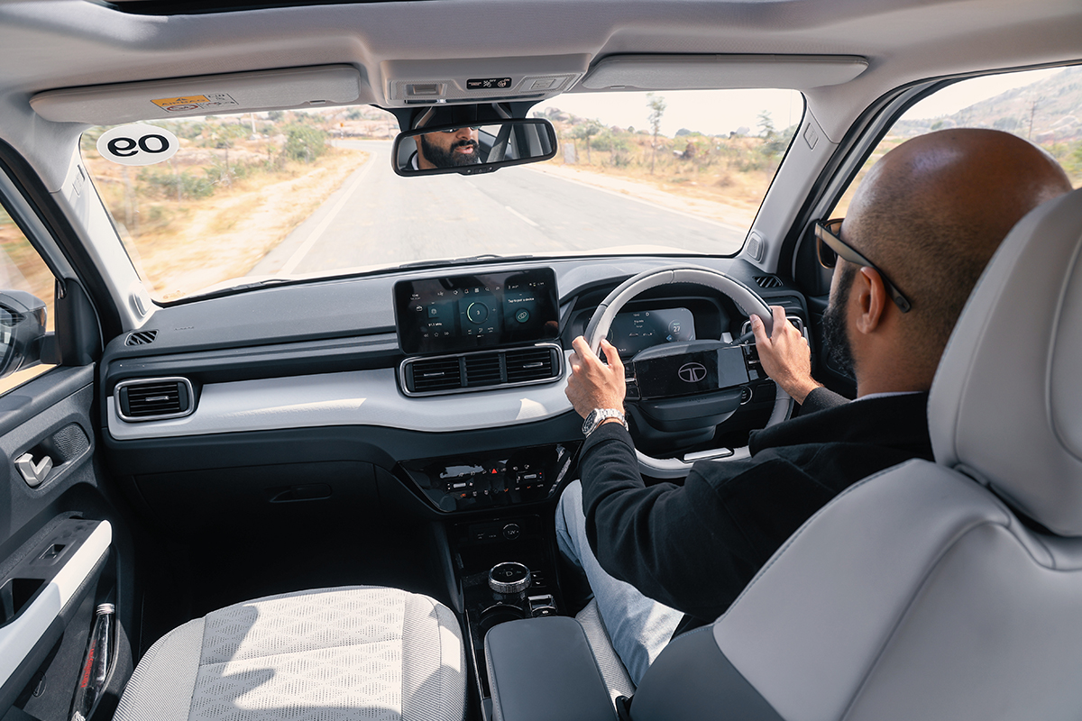 Interestingly though, the charging port has moved to the nose, behind the Tata logo, with a panel that pulls back at the touch of a button (and there’s no fuel filler cap cut-out on the side panels either – nice). It’s a slick mechanism that feels miles ahead of any of the fuel filler caps that were on previous EVs. However I don’t like that I have to open the door and reach out to the centre panel to access said button every time I want to open the charging port. There’s a failsafe under the hood as well — a mechanical operation — but I feel Tata Motors should have given a button on the key fob which pops open the panel. Would make living with it much easier.