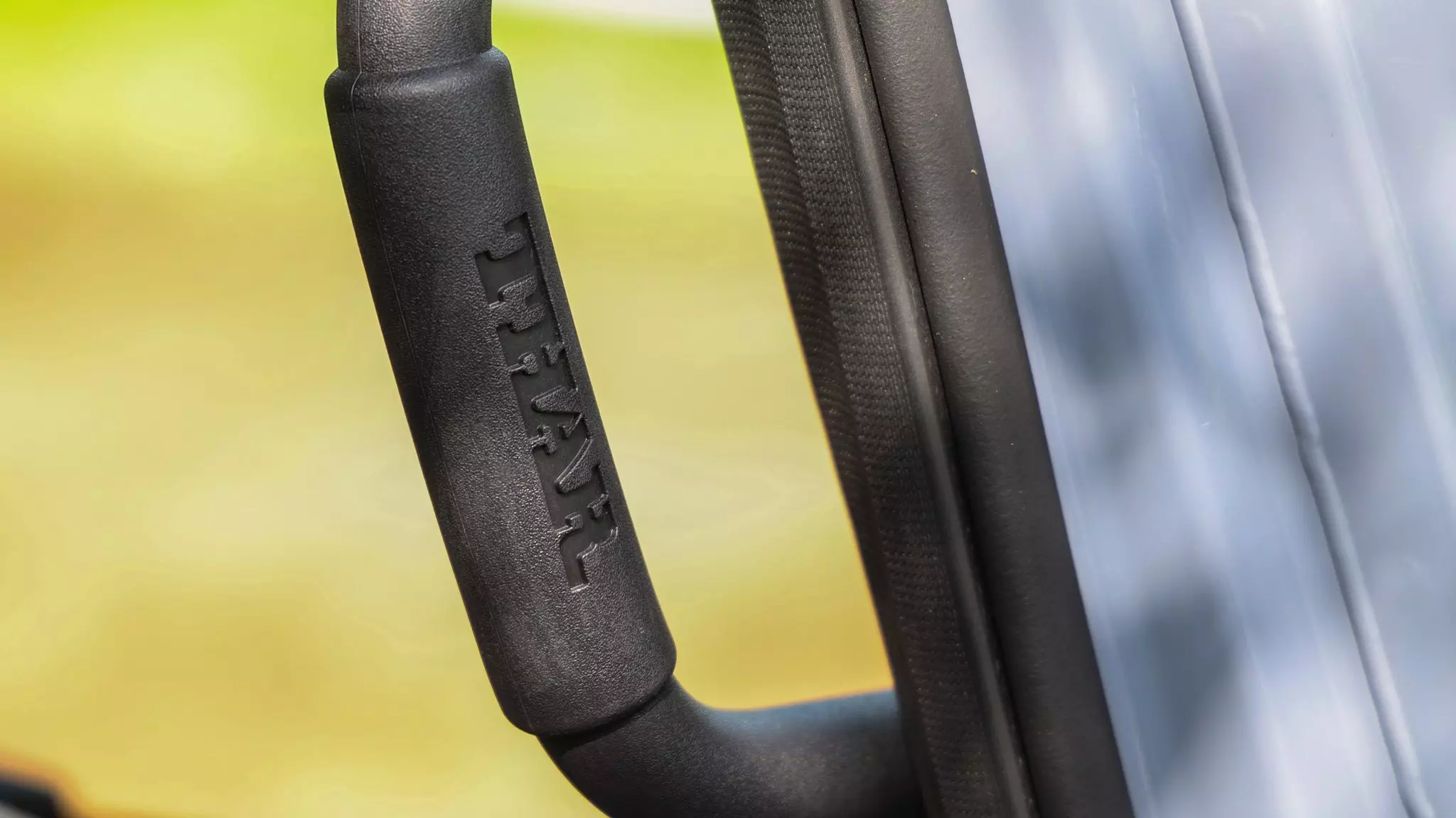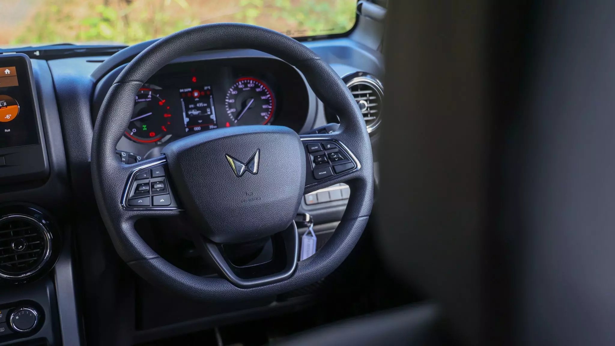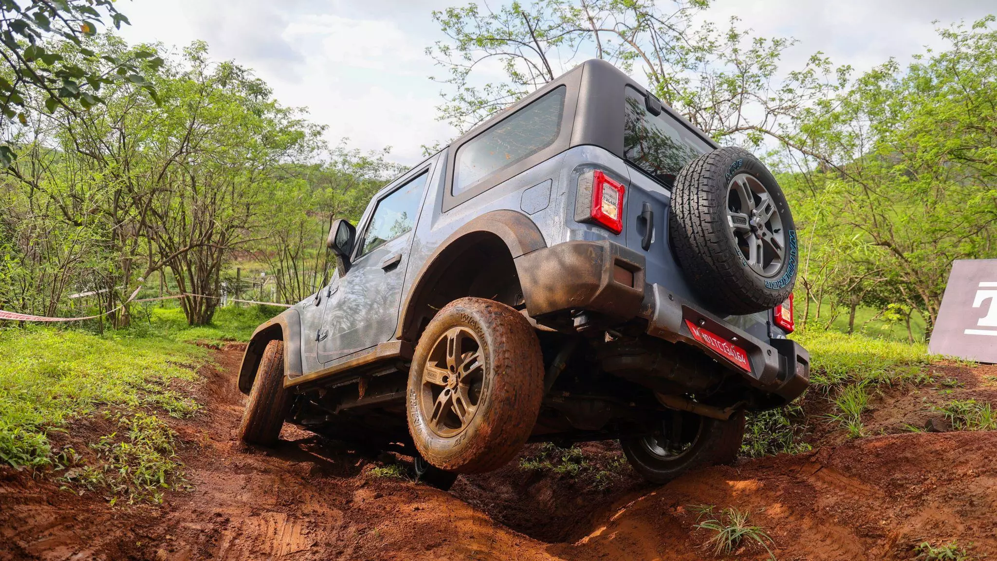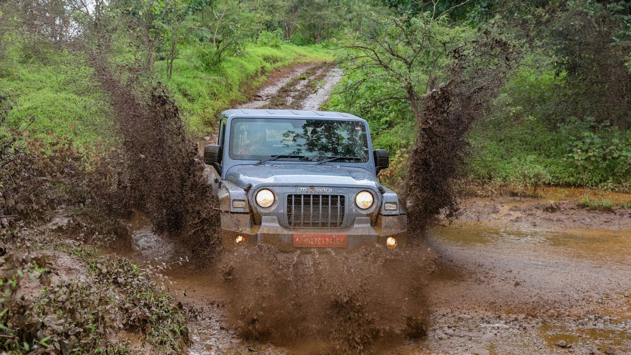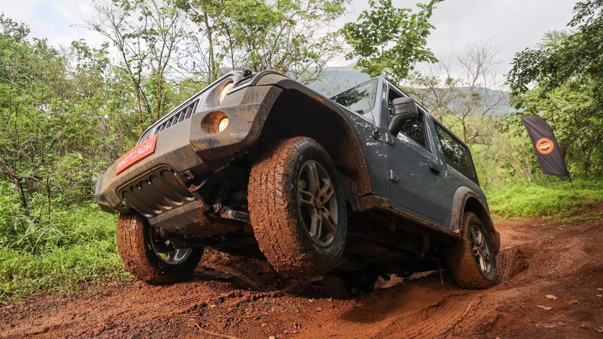 But all this wouldn’t matter if the Thar didn’t still excel at what it was born to do – laugh in the face of rough terrain. The fundamentals remain unchanged: a second lever for switching between 2H, 4H and 4L, a 41.8-degree approach angle, 27-degree ramp-over, 36-degree departure, and 650mm water-wading depth. The interior and dashboard are IP54-rated, which means a bit of splashing won't hurt, and drain plugs in the floor let you hose it down after a muddy adventure. Mechanically, you still get an electronic driveline disconnect and a brake-locking differential, making off-road ability almost idiot-proof.