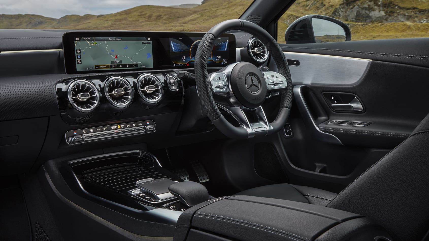 Right from the off, the gruff four-cylinder is perhaps a little less refined than you would expect given the three-pointed star on the grille, but once inside it's quiet enough, your attention instead drawn to the glitzy interior. Pull away and it's not obvious the A35 is anything other than a standard A-class, but start delving into the (seemingly endless) driver modes via the poorly placed switch and the A35’s character changes quite dramatically, gradually sharpening the steering, throttle, transmission and, where fitted, the adaptive dampers.