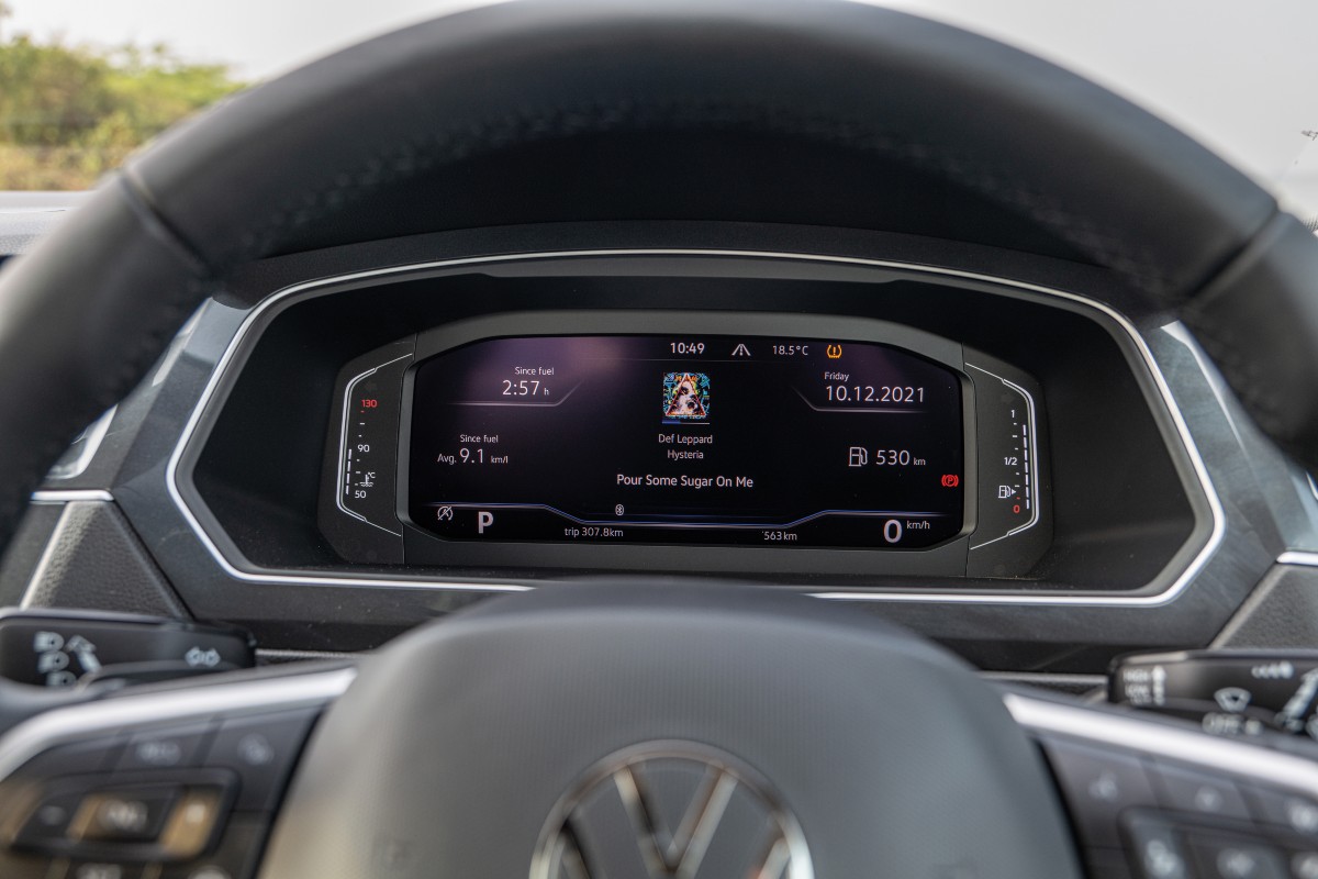 Step inside and the interior of the Tiguan features an all-black theme, accentuating the sportiness of the cabin. You now get a new flat-bottom steering wheel wrapped in leather wearing the new Volkswagen roundel. Get behind the ‘wheel and you will notice that the Tiguan ditches the old-school analogue dials in favour of a fully digital instrument cluster.