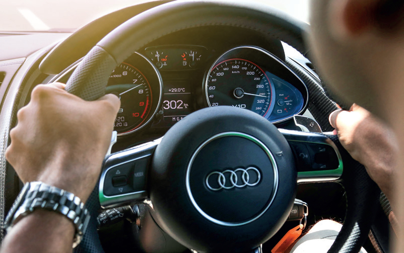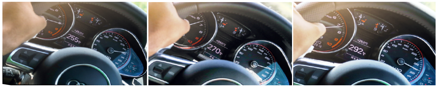 Probably the only view of the R8 most people ever saw280kmph. The braking markers come into view. 285. 290. 293. I dare not look down at the speedo. Briefly I think that a head up display would be nice. Concentrate! – I scream to myself. There’s far too much noise now. Gaurav is alternating between speed, braking marker distances and firing the camera. While planted the car is also now shuddering over every bump. These are serious figures and the car is approaching its limits. The wiper comes on. Spots of rain. Shit. 296. 298. Come on! Come on! Fractions count now. My left foot is primed and covering the brake pedal. 300! 301! Brake, brake, brake.