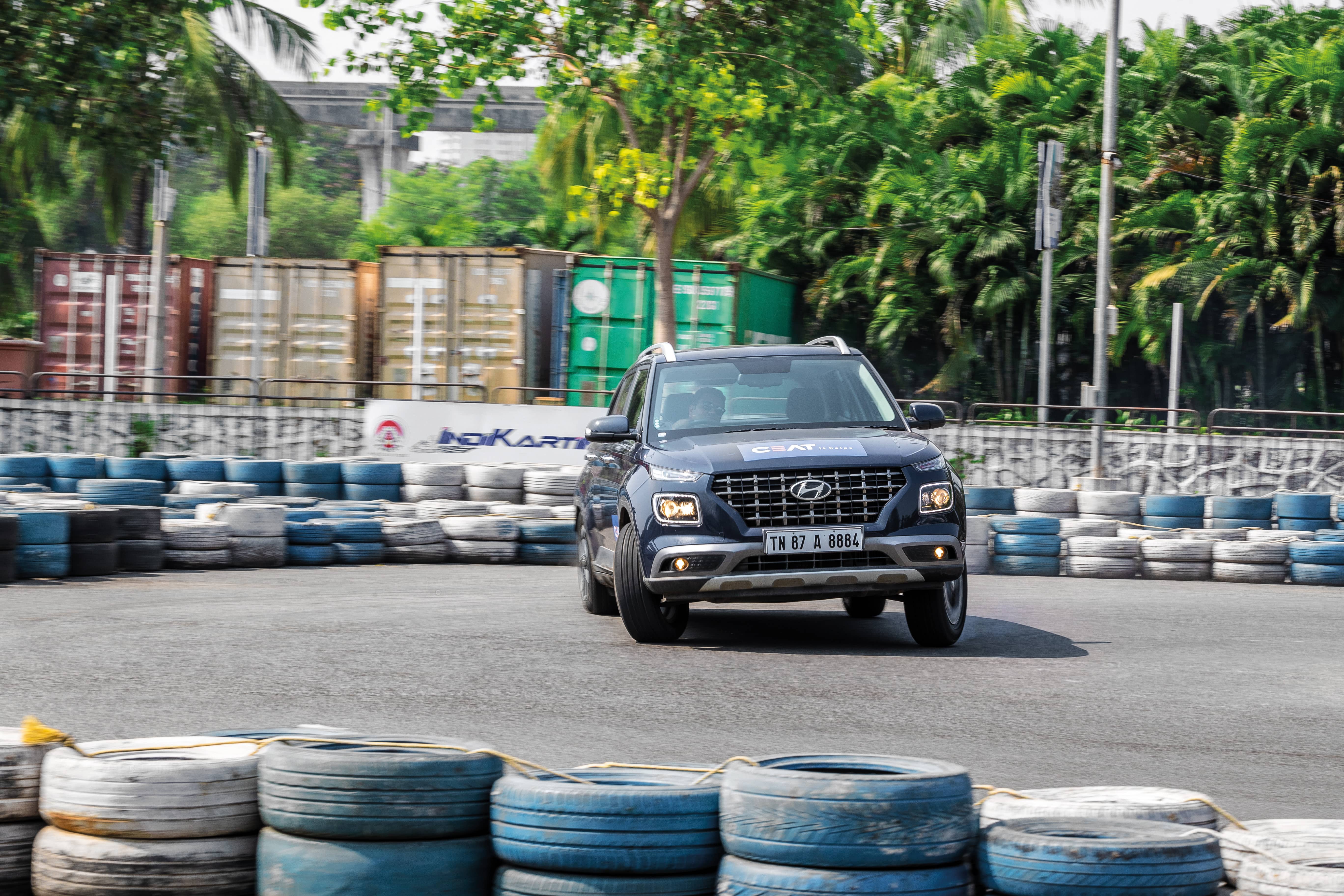 Hyundai Venue being drifted by ed Sirish Chandran at Ajmera Indi-Karting circuit in Mumbai