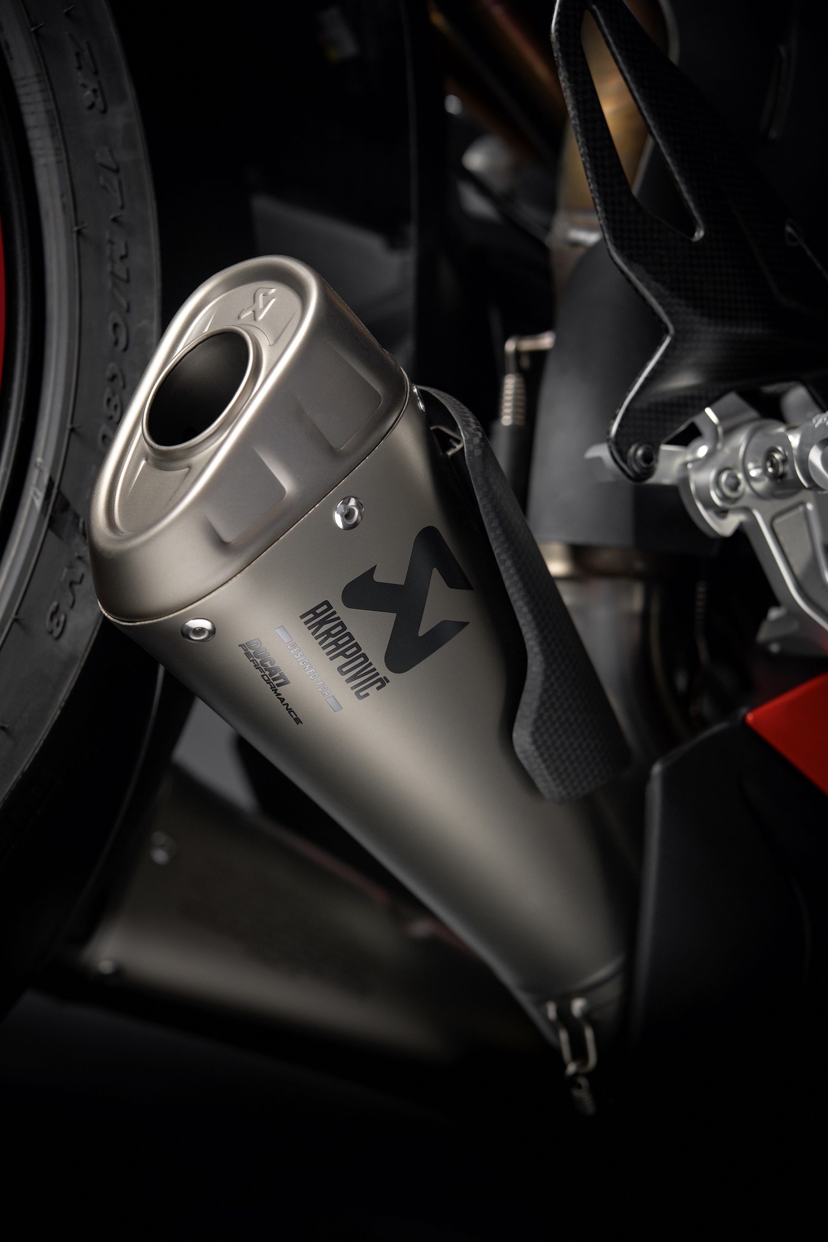 A true race-replica, this exhaust system was developed by Ducati Corse technicians based on the Panigale V4 Rs ridden by Chaz Davies and Scott Redding in the World Superbike Championship. Each part of this system is made from a special titanium alloy which is not only lighter but also more heat-resistant. The exhaust system significantly improves the already high weight/power ratio of the Panigale V4 bikes. The exhaust is also equipped with a racing-derived polyester air filter for better filtering power and easy maintenance. The exhaust can easily adapt to all the parameters of DTC - DWC - DPL and Slide on demand, lending a touch of aggressiveness to the Panigale V4..