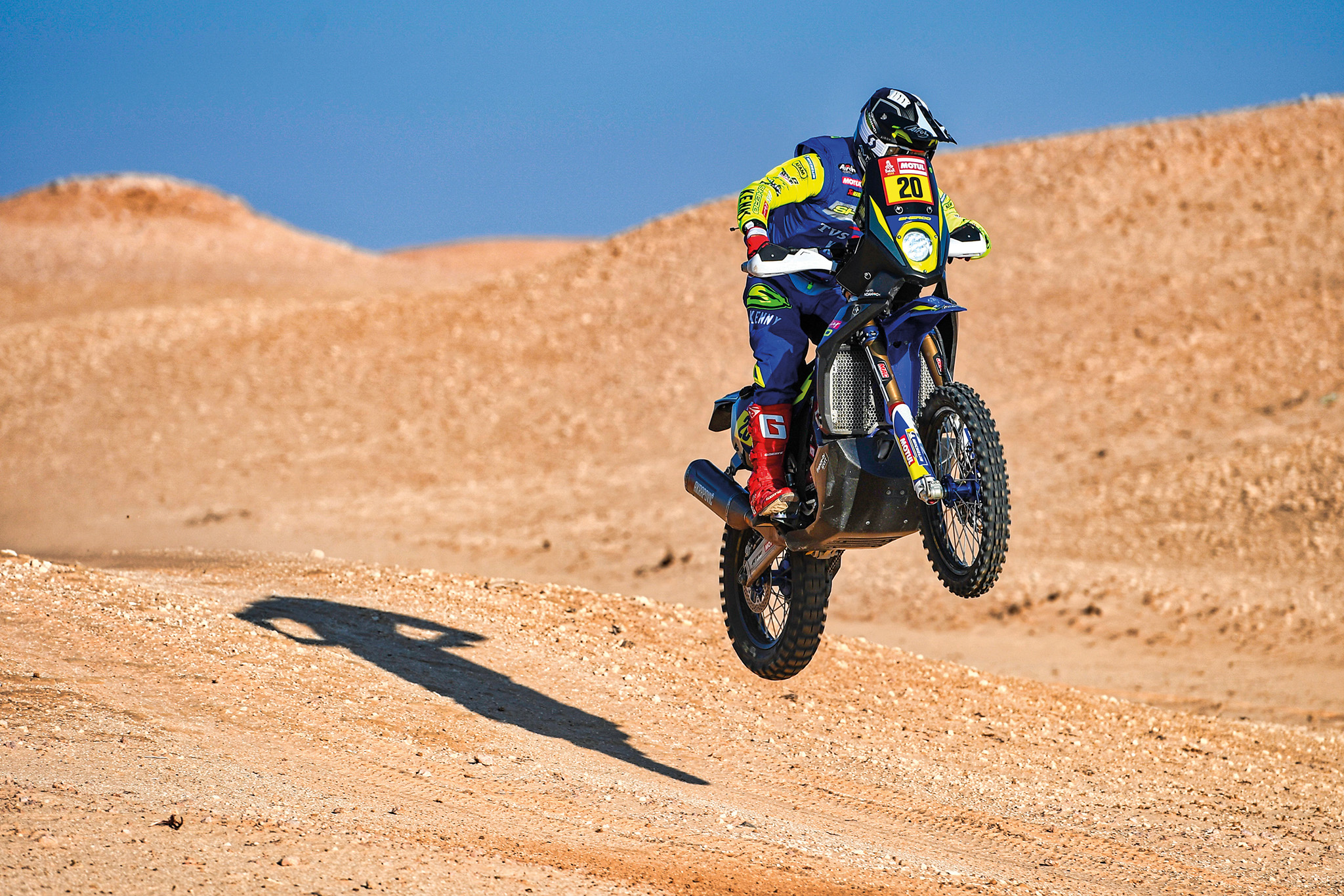 A: Yeah, I spent a lot of time in India after the 2021 Dakar. I had two surgeries — one to remove the plate from my collar bone and then a little cleanup for my knee. After that, I just stayed in India and trained a lot in Kerala. Then I went to Europe, around the end of the year and did some roadbook training in Spain, France and most importantly Morocco because it is most similar to the desert. It is so important to get as many rallies under your belt. But as I have always said. You can't really prepare for the Dakar. It's a long process, not just a month or two or a year. It's over a long period of years. So your basics need to be strong. You need to be strong in your endurance which is the most important and you also need to have a little bit of pure strength to lift the bike when needed. So for that my training involved a lot of running, road cycling and spending as much time as possible on the rally bike in the desert in race-specific scenarios and doing road books as well. Me and team TVS tried to do the best we could and I think we did a good job.
