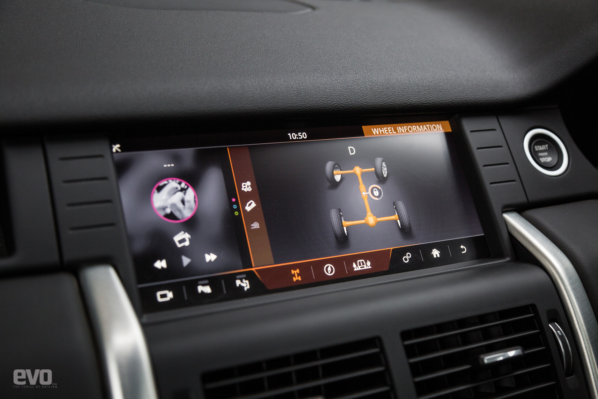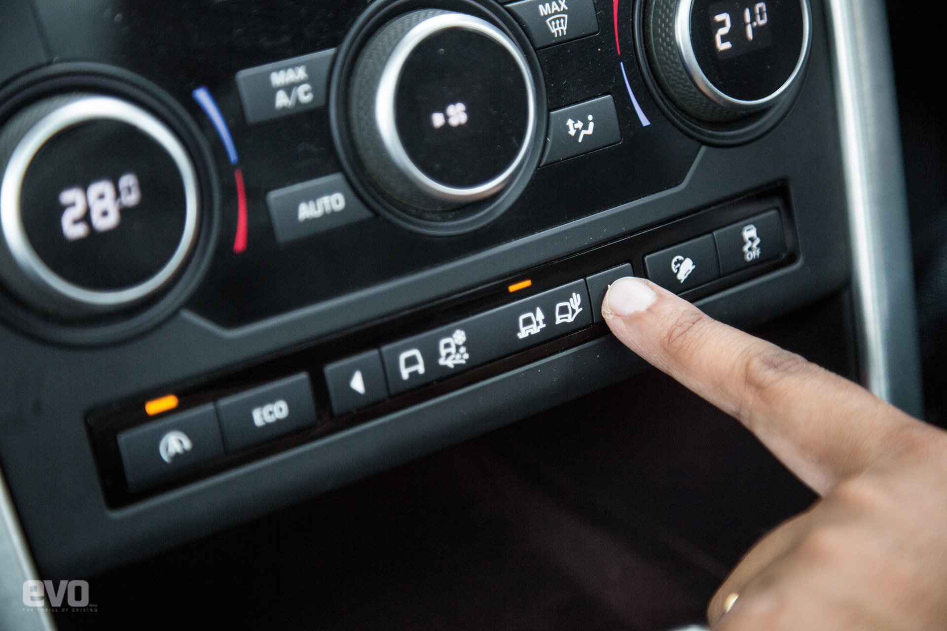 Terrain Response is accessed via buttons on centre consoleNext is the river, but with 600mm of wading depth this is dispatched all too easily. As we carry on into the woods the rain comes down even harder making it impossible to pull out the cameras. We contemplate turning back but Ashish will have nothing of it. Helpfully he also points out that there’s no space to turn around. I thumb a button to activate All Surface Progress Control. You set the speed and the Discovery Sport accelerates, brakes and keeps you at the set speed while all you need to do is steer. It makes sure there’s no unwanted wheelspin, which not only makes for more measured progress but ensures the tracks don’t get dug up by spinning wheels. Tread softly, that’s the unwritten rule here.