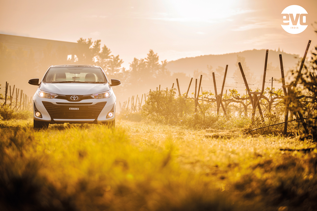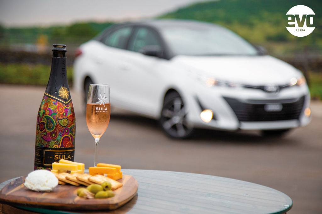 Yaris with the Sula WinesIt was dark by the time we returned but thankfully, the Yaris’ automatic projector headlamps throw a wide and long beam, one immensely reassuring aspect about the sedan is its safety kit. There’s everything you must have and then there’s some more. You get as many as seven airbags, ABS with EBD and BA (Brake Assist), front and rear parking sensors and disc brakes on all four wheels in the V variant that we drove. The top-of-the-line VX even gets a tyre pressure monitoring system, vehicle stability control that helps on slippery corners, and hill start assist that lets you start up the car on a slope without the fear of rolling back.