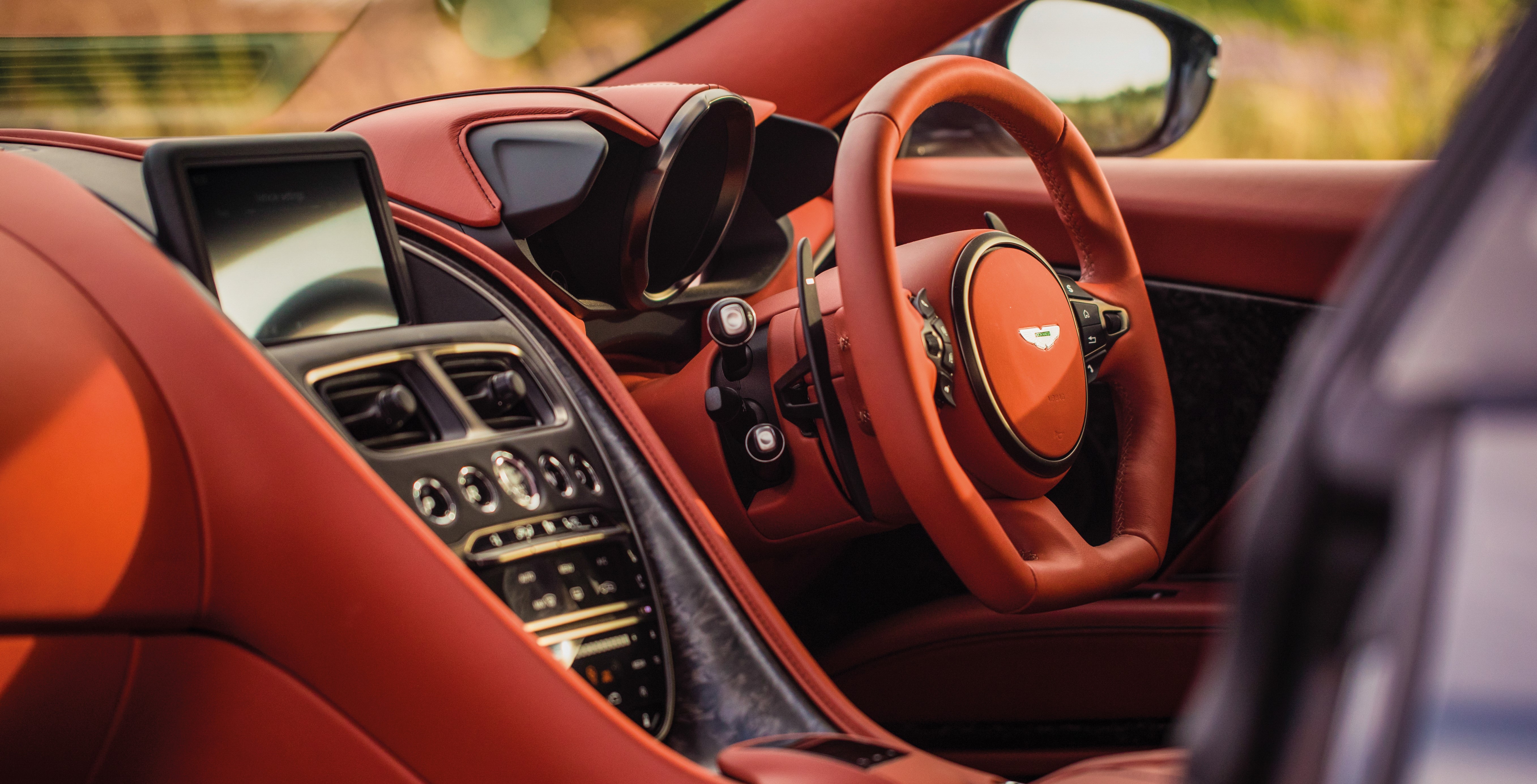 InteriorsThe DBS is a DB11 V12 on full afterburner reheat and one of this car’s key strengths was actually relatively easy to achieve: extracting 715bhp from Aston’s twin-turbocharged V12 may seem like a landmark achievement, but getting the extra 85bhp and 200Nm over what the DB11 AMR offers simply required an ECU remap, taking the 5.2-litre lump to the extreme of what it can manage before hardware changes are required. If we must accept that this familiar motor has lost some of its operatic vocal range with the reduction in capacity (731cc down on the 5935cc in the DBS’s Vanquish S predecessor) and the addition of twin turbos, then we can also revel in the massive boot up the backside it’s been given by the adoption of forced induction. It’s hooked up to a new gearbox – still an eight-speed ZF auto, but a larger, stronger unit to handle the massive torque now pulsating through it. There’s a mechanical limited-slip differential after that, with torque vectoring, and a shorter final drive for the benefit of acceleration. Dealing with those massive outputs at the ground are 21-inch wheels shod with bespoke Pirelli P Zero tyres, 265/35 at the front, 305/30 at the rear and filled with noise cancellation foam to cut down road noise while crushing continents.