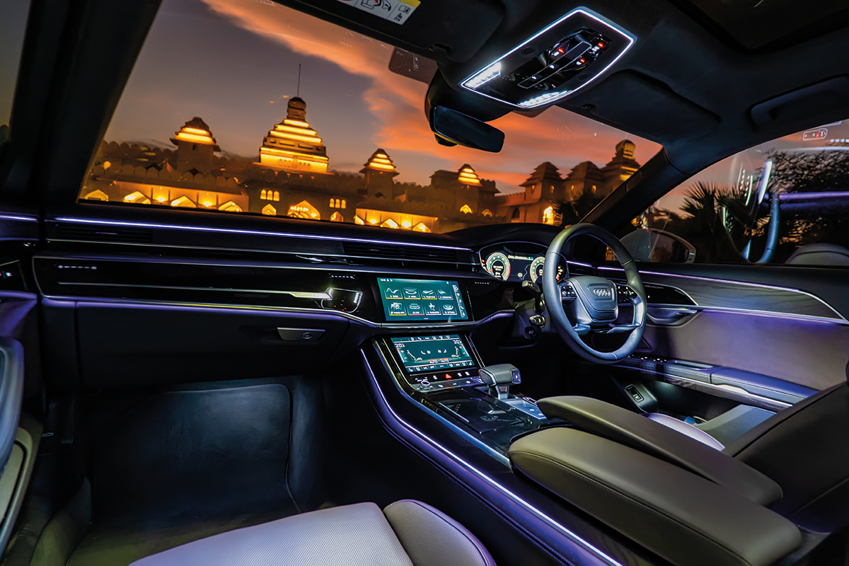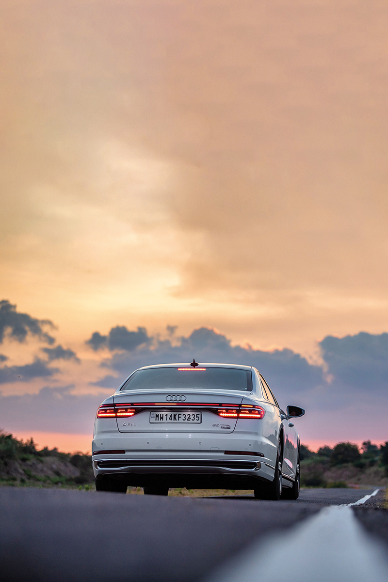 The Audi A8 L symbolizes the pinnacle of luxuryTIME. The first time I tried to understand it properly, my brain hurt. The whole theory of relativity went so far above my head that it was probably in deep space, just like Einstein intended. So I just went back to the simple, colloquial understanding we have of it. Seconds. Minutes. Hours. Days. Tick, tock, tick, tock. And then my brain started to hurt again. Because the fact that time is a finite resource — the ultimate finite resource — became more and more apparent. All of us have an hourglass. And no warning of when all of the sand will hit the bottom. Morbid, you say? Well, too bad — life isn’t always sunshine and daisies. That’s until you meet the Audi A8 L. 5.3 metres of speed and luxury, built to pamper you from the moment you step inside. Actually scratch that, it pampers you even before you step inside, rising up a whole 50mm when you open the door to ensure your knees don’t creak when you drop yourself into one of the seats. This is Audi’s flagship and brand shaper; it defines everything that follows, from its SUVs right down to its smallest cars. That letter and number — A and 8 — come together with a certain heft. They have a weight to them. They symbolise the pinnacle of luxury, and for good reason.
